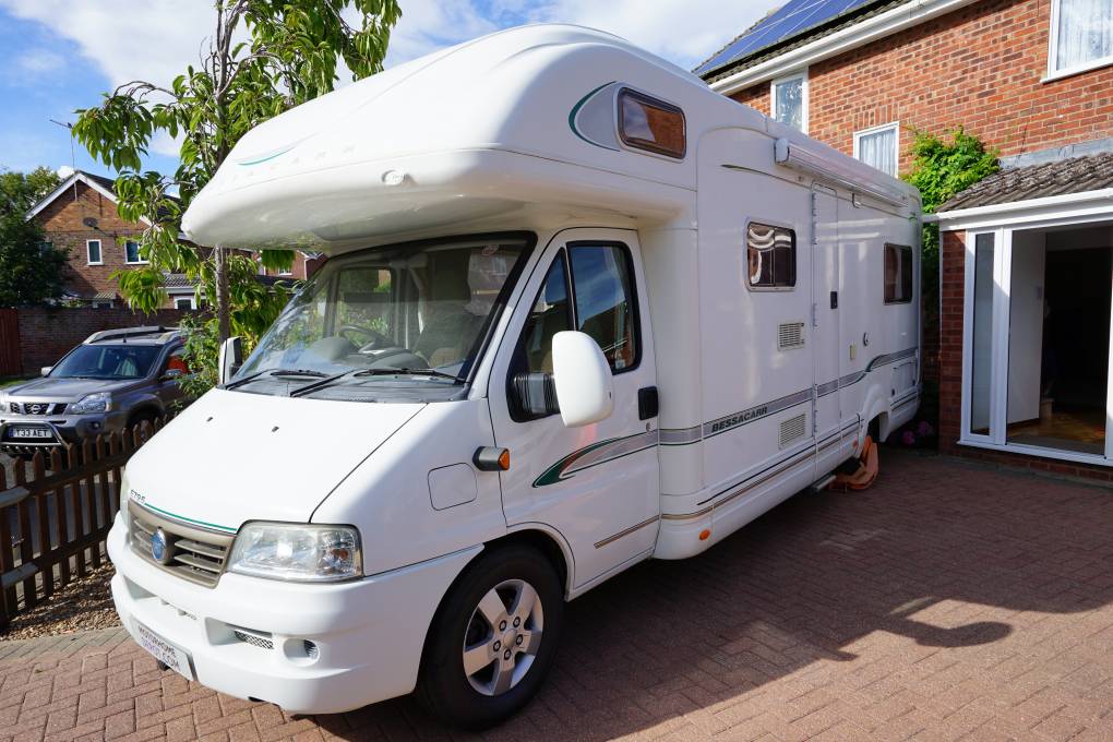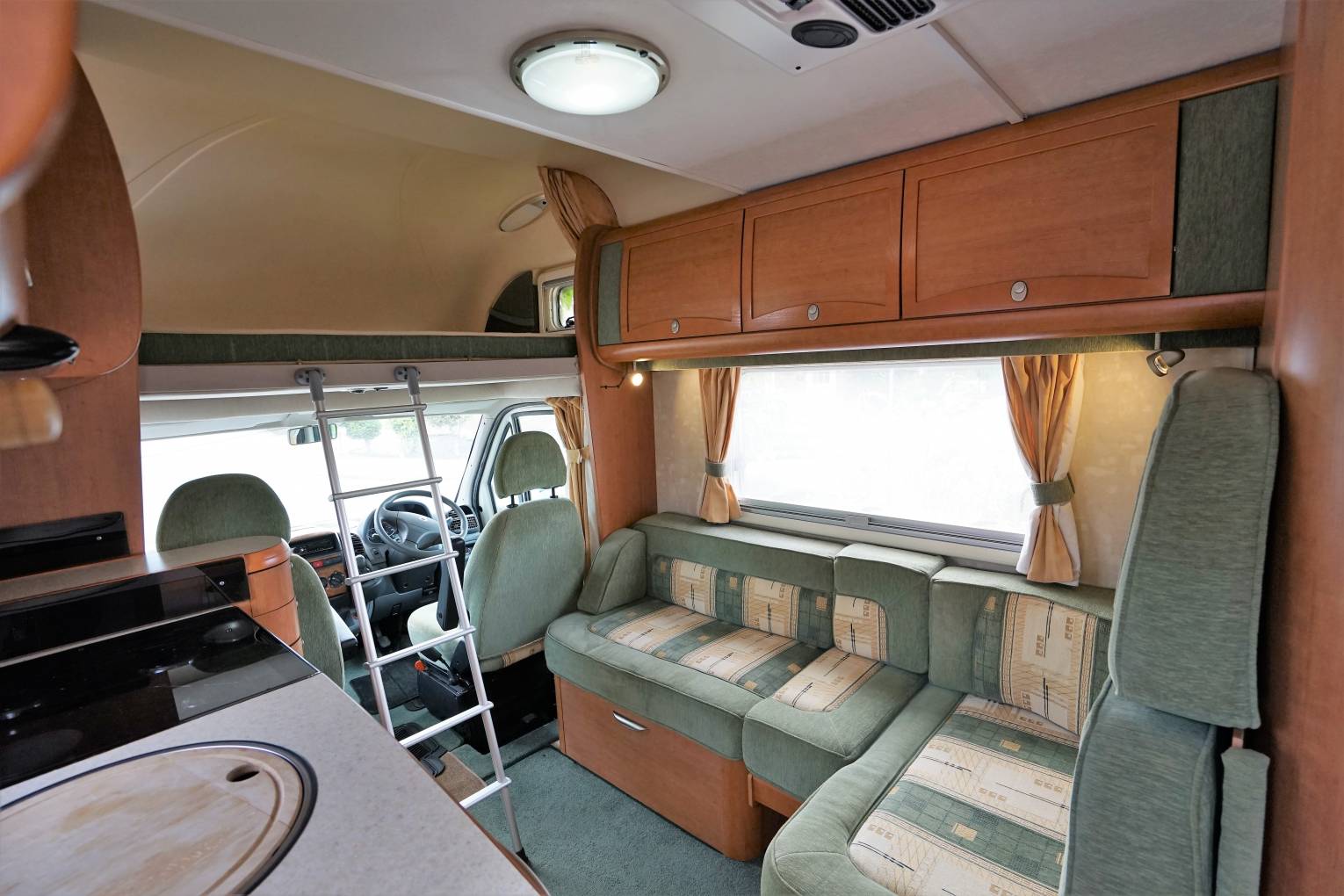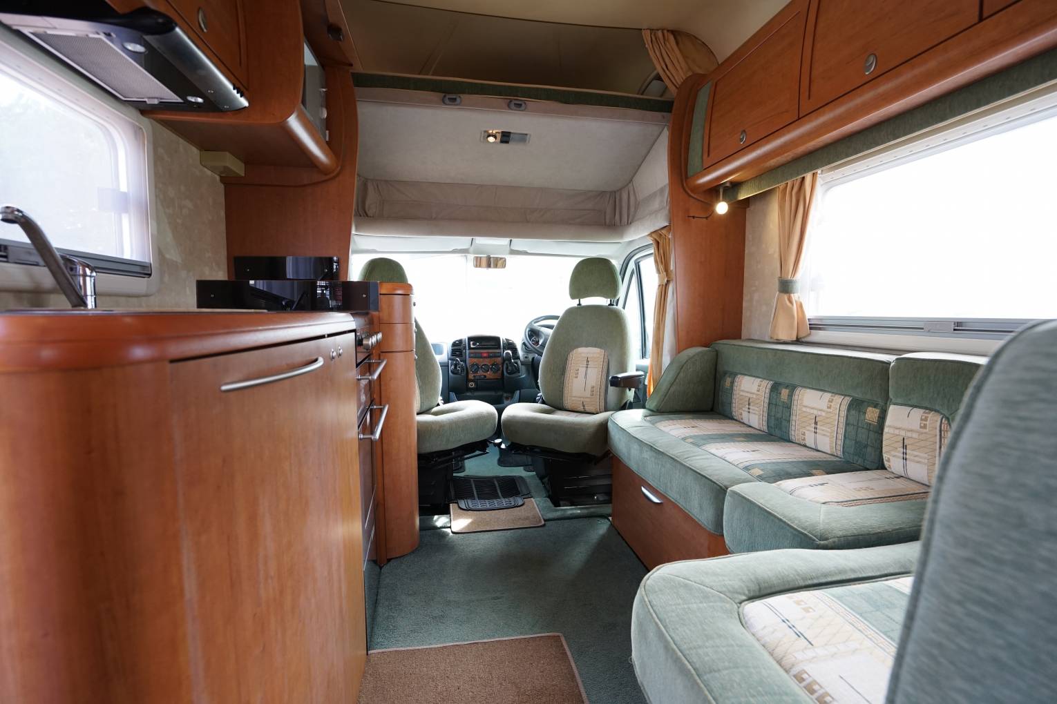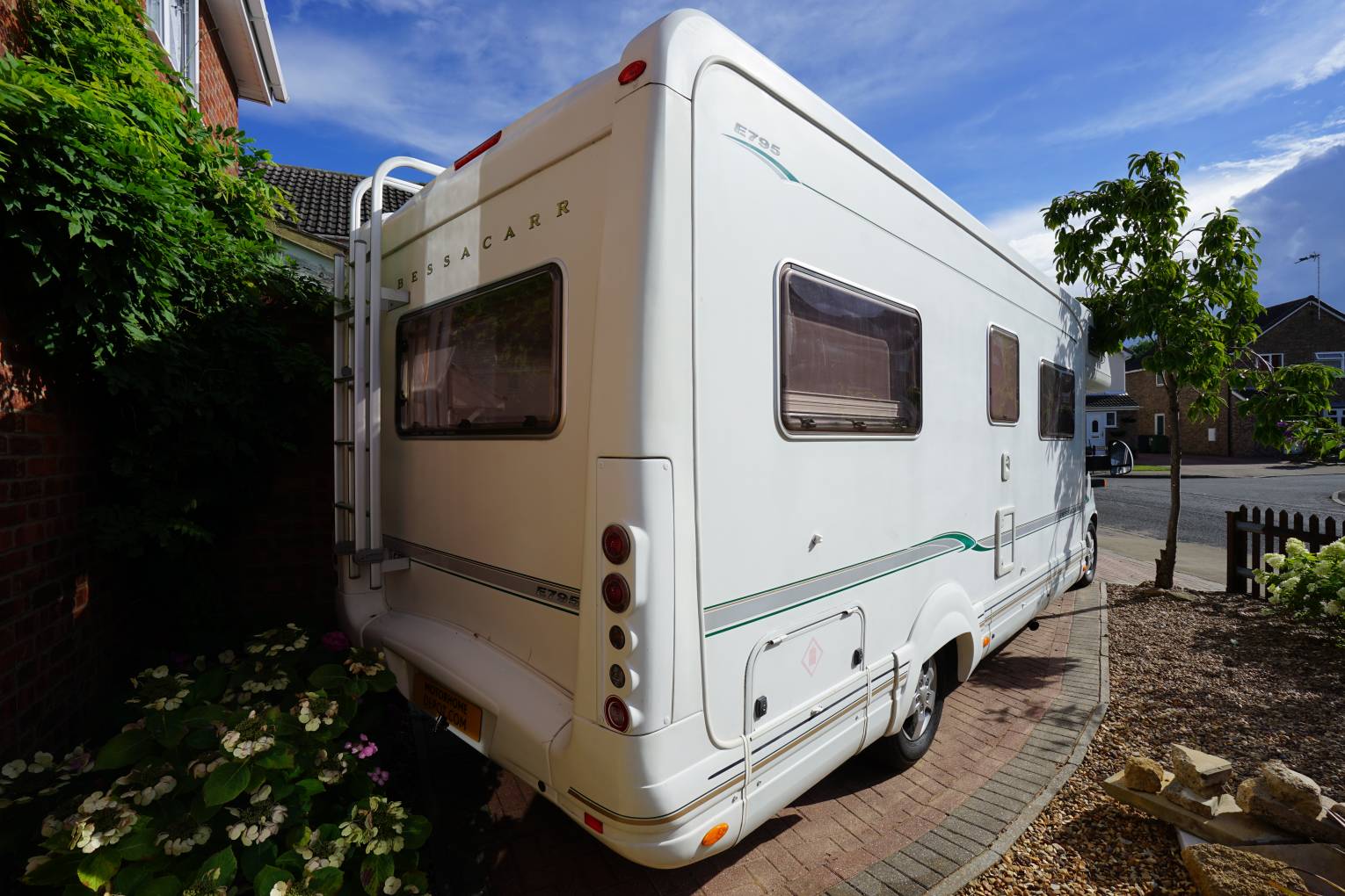 2005 BESSACARR E795, 6 berth motorhome with sought after rear u-shaped lounge, additional Front L shaped Lounge and Overcab double bed. Features include 4 Seat belts, Habitation Air Con, Inverter, Cobra Alarm, 4 New Tyres, Reversing Sensors, Swivel Seats, Microwave, Dual fuel Cooker, New Wind out Awning fitted 2018, TV.
