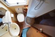 The washroom has a separate shower cubicle with revolving smoked Perspex