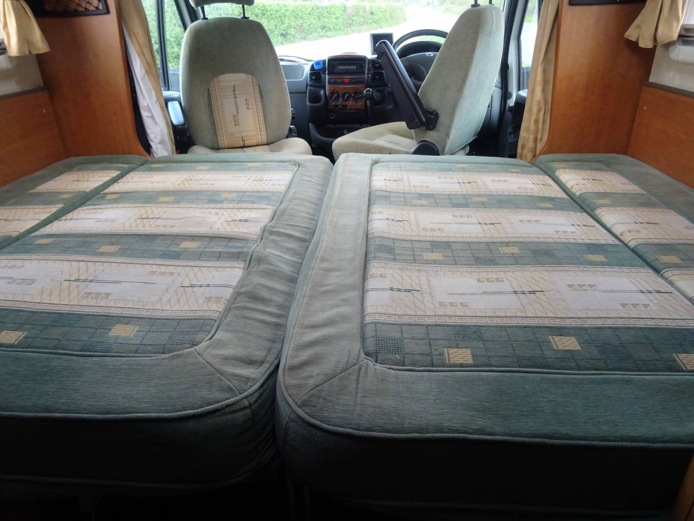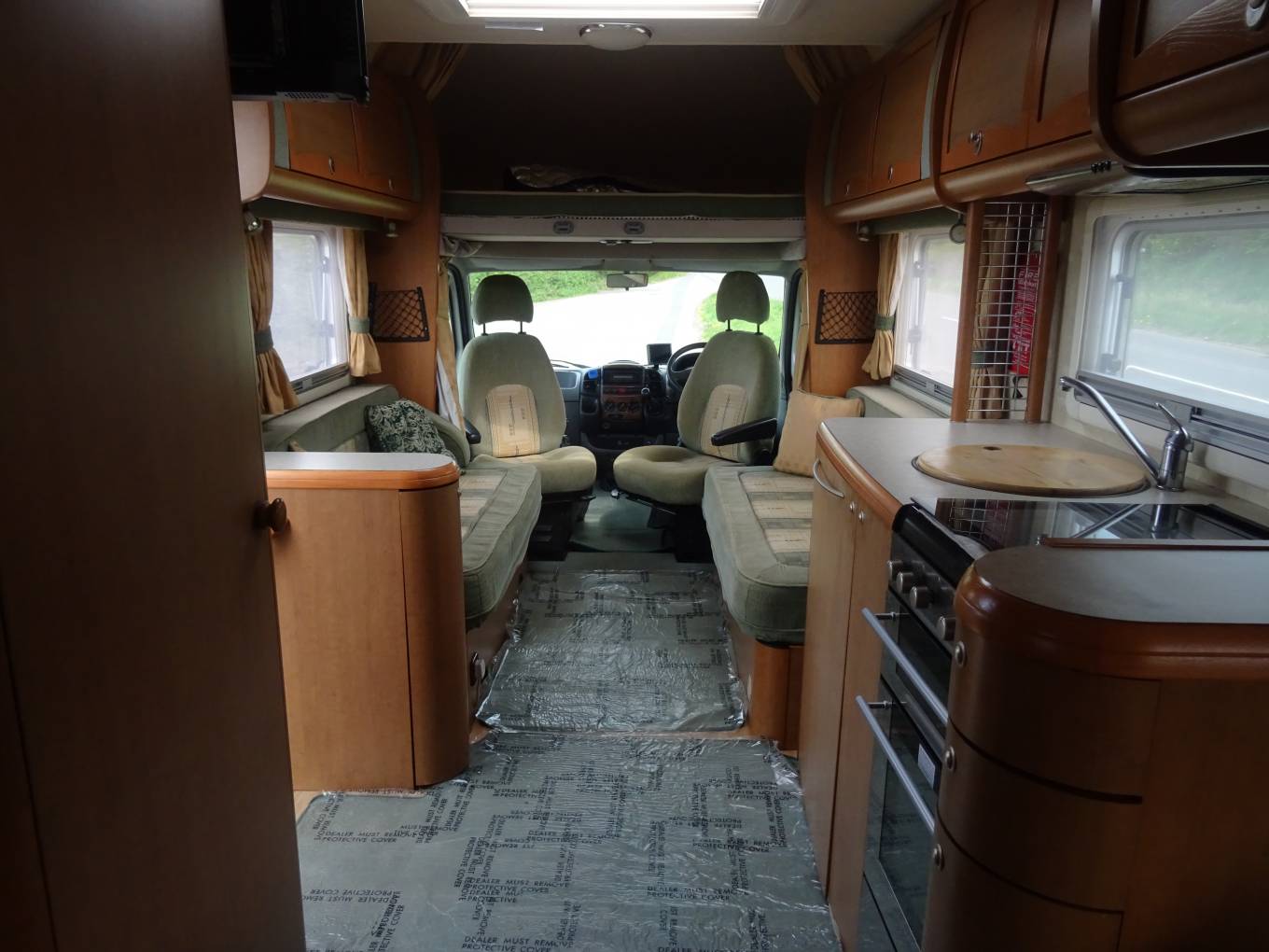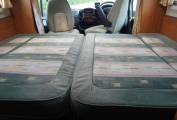 Moving into the drivers cab a reversing camera, cobra alarm, radio/cd player have been fitted as well as blown air heating and electric windows and mirrors. A curtain on a curved rail can be drawn and silver screens fitted for your privacy, as well as blinds ( with fly screens ) which are fitted throughout the habitation area, including the roof lights. This wonderful motorhome has been had loads of extra's added and been very well maintained, making it a great purchase for its next luky owner.