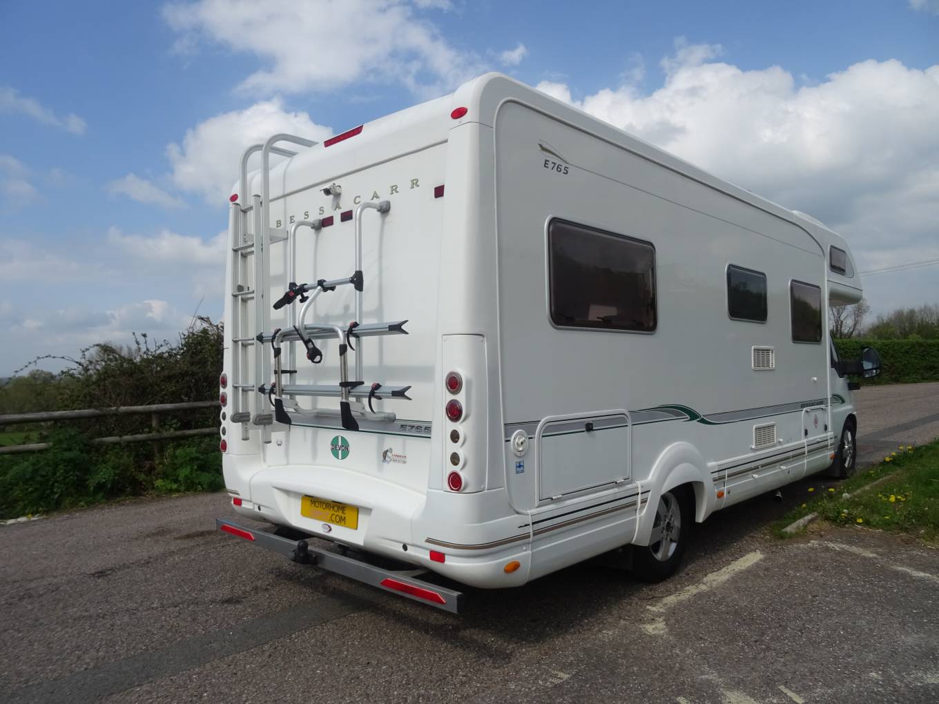 For sale - A lovely Bessecarr E765 Fiat Ducato manual diesel with a revenue weight of 3850kg and having the popular 2800cc Fiat engine. This 7.44 metre long motorhome has an MOT valid until April 2023, had a service March 2021 @ 41,875 miles and a clear hab check in June 2020. The Bessecarr has external ladder access to the roof which has a dome enclosed satellite dish, 160w solar panels and a roof rack for extra equipment for those longer trips away. At the rear we also have a bike rack for two bikes and a professionally fitted Alko tow bar. Other benefits include the SOG system for the Thetford cassette, a bbq gas connection point, a Fiamma F45L awning, a 240v hook-up, the gas cylinder cabinet and loads of lockers to provide plenty of storage.
