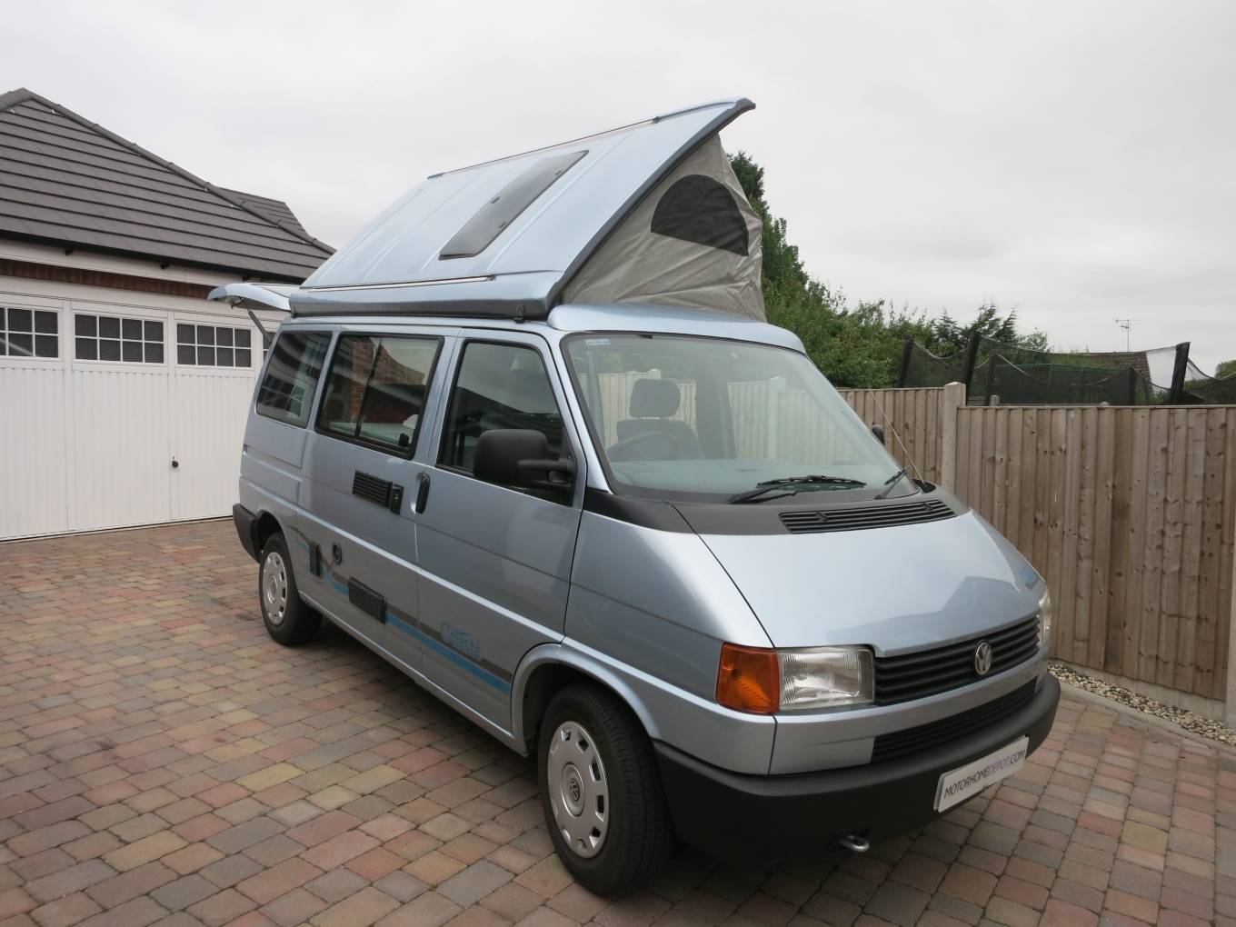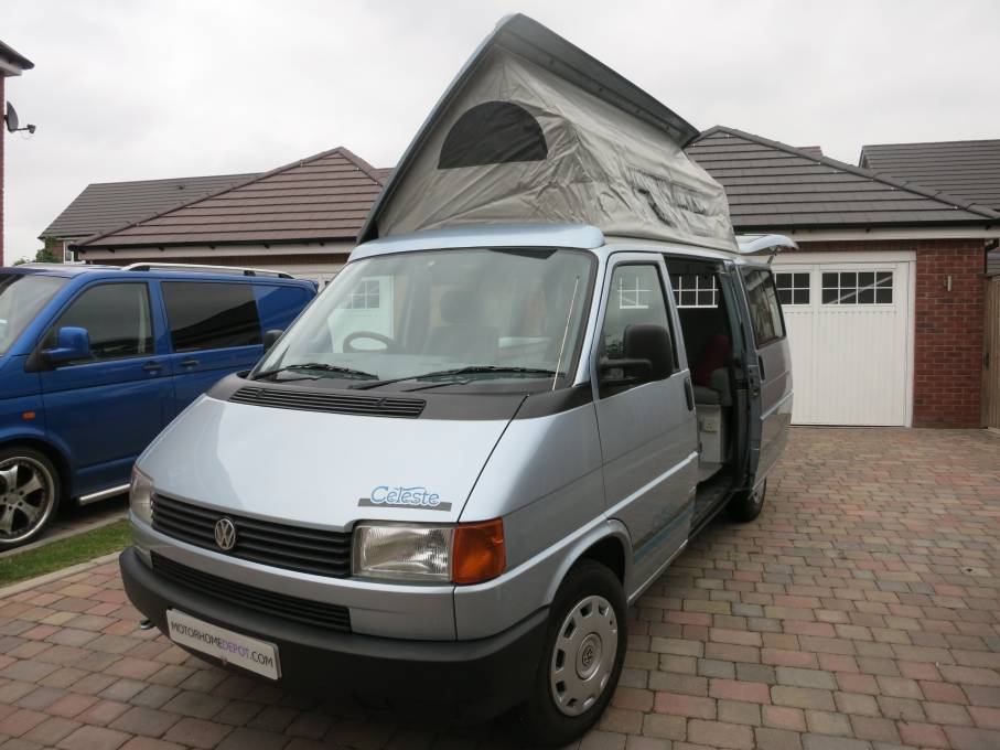 PRICE REDUCED...PRICE REDUCED... STUNNING EXAMPLE OF A BILBO CELESTE, 4 BERTH CAMPER VAN WITH SIDE OPENING POP-TOP ROOF. AMAZING CONDITION FOR IT'S AGE WITH FULLY DOCUMENTED VW SERVICE HISTORY. Built on the reliable VW Transporter T 4 and powered by the smooth running 2.0 petrol engine that is capable in returning around 30 to 35 to the gallon. The inside of this vehicle is as good as the outside with 2 x rotating captains seats, side galley kitchen with a 3 burner gas hob, grill, stainless steel sink and a good sized 3 way fridge. Fitted with on board fresh and waste water tanks, Electric hook up, leisure battery and split charge relay, Lots of cupboards and a rear storage locker. The 3 seat rock and roll bed is also fitted with 3 seat belts making this vehicle a 5 belted seat vehicle. Totally original not messed around with this camper is well worth viewing. FOR ADDITIONAL INFORMATION , PHOTOGRAPHS OR TO ARRANGE TO VIEW THIS VEHICLE PLEASE CALL GEL ON 07747 100 103. PLEASE NOT THIS VEHICLE IS BASED IN REDDITCH.