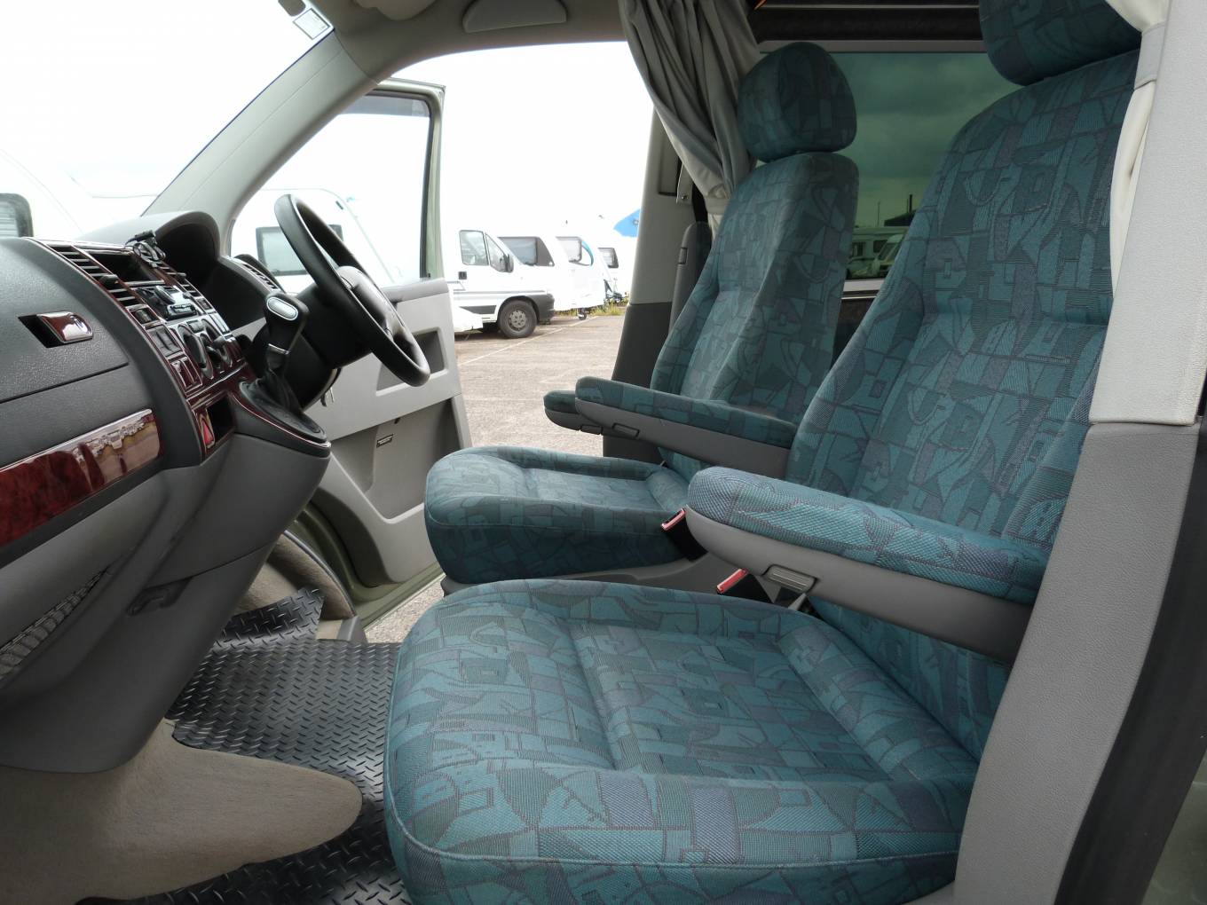 Call 01423 609985 for further information. This is an exceptional Hi top campervan conversion by Bilbo’s. It is quite simply immaculate, both inside and out. 1st impressions, last and this lingers, being stunning metallic green. This Bilbo’s Lezan, 2 berth campervan, with 4 seatbelts, was registered in March 2006 and sits on a VW chassis, with automatic transmission. This is a compact campervan being 5.20 metres long, so it fits in most parking spaces. The rear washroom comes with a toilet, sink, vanity mirror inside a cupboard and useful shelves opposite. A privacy screen can be used before entering the kitchen, which has sink, 3-way fridge with freezer compartment, SMEV grill, and 2-burner gas hob above. There is a good-sized worktop area above the fridge and plenty of cupboard space at eye level and also below the fridge and grill. The 2 travelling seas, are manufactured by RIB and make up the very wide and comfortable single beds. Each seat has a full seat belt and useful storage underneath. The upholstery is in particularly good condition throughout. The sleeping arrangements are 2 single beds of approx. 6 feet in length and 2 feet wide, using the 2 front seats and RIB travelling seats, which is more than a standard rock n roll bed and also more comfortable. In the cab, both seats’ swivel, to enable the beds to be made up, but also when combined with the dining table and smaller table that easily stows away, 4 people can nicely sit in here. Above the cab, is a useful storage area, for bedding etc. In the cab, there is automatic transmission, radio/ CD with Bluetooth, 2 swivel seats, electric windows and mirrors. Impressive extra features include, a remapped 2460cc engine which provides 170bhp against the normal 130bhp, so assists fuel economy, demountable towbar, metallic paint, VW valve covers and steel running bars. There is a Webasto diesel heating system, windscreen covers and approx. 6 feet 2 inches of headroom. A recent service was undertaken in April 2022 and this fantastic campervan is chain driven , so no timing belt and has travelled 120,000 miles. It is stunning in everyway, every owner has taken great care of it and should be seen at the earliest opportunity near Hull. Please call 01423 609985 for more information quoting reference 212766