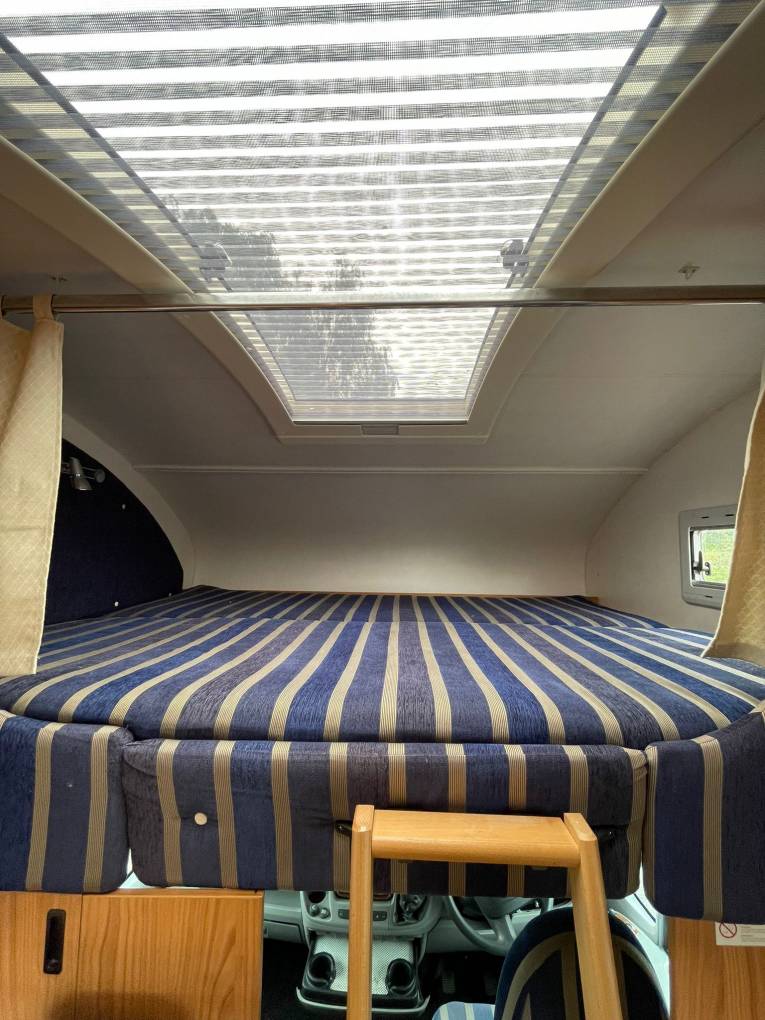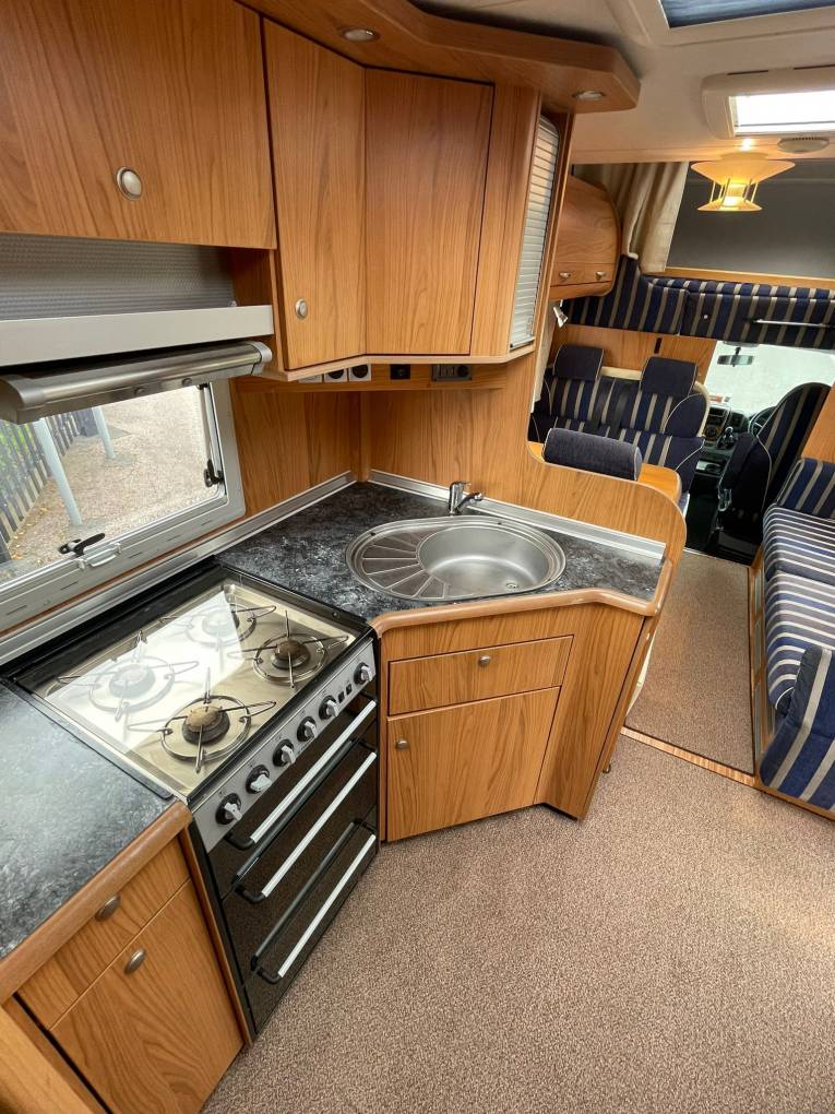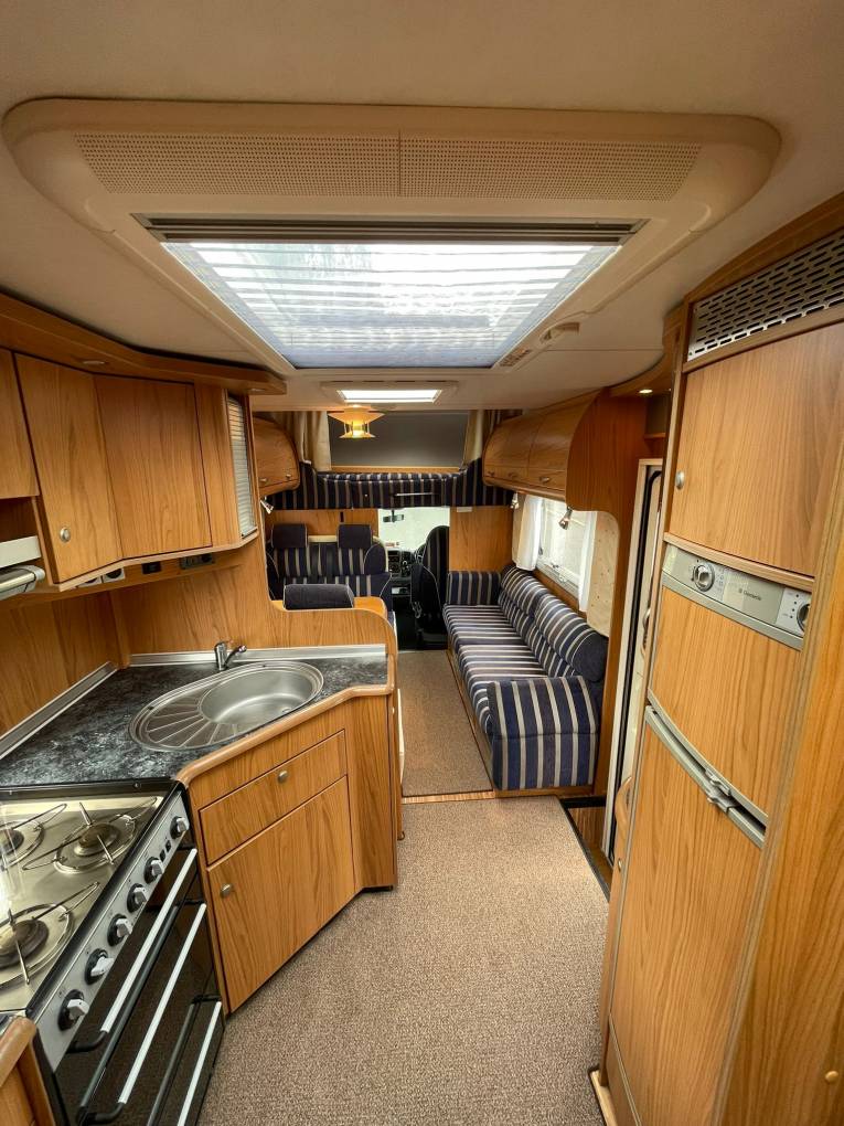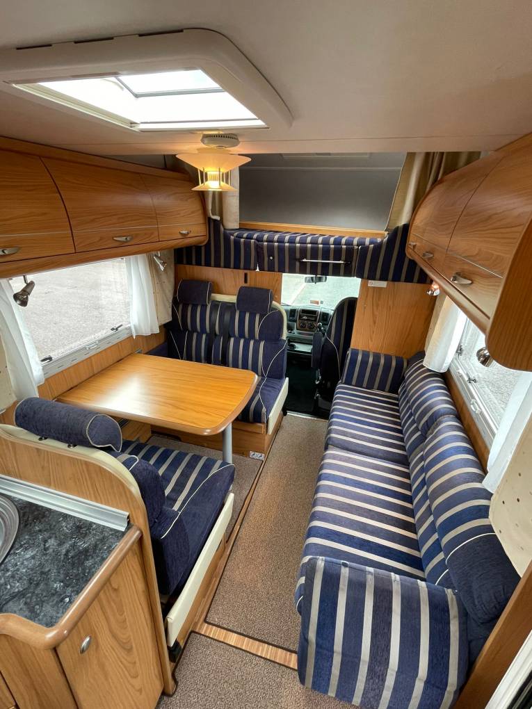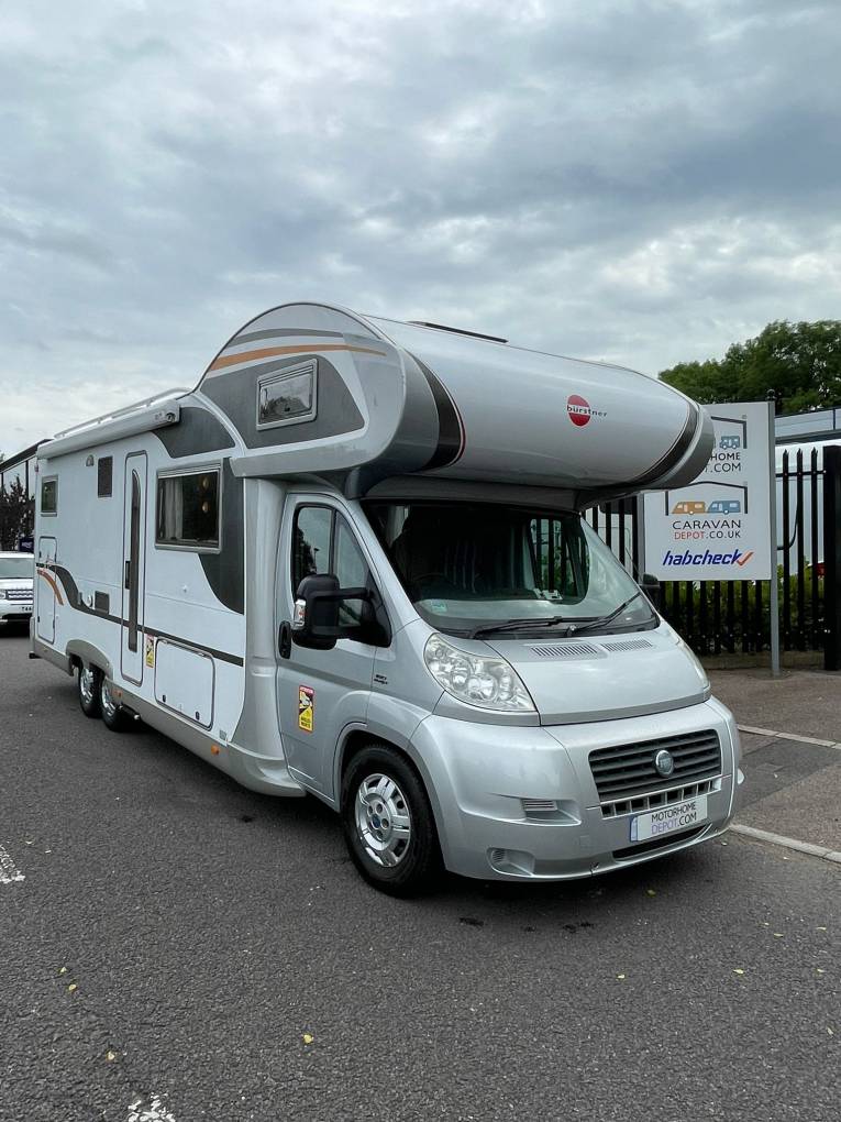 Motorhome Depot Head office present this Burstner Argos 747 which is 6 berth has 6 travelling seat belts. A spacious living area for families and a large garage in the back ideal for long tours or motorbikes etc .Above the cab has a large double bed, with a skylight and tilted spotlights, which can be curtained off for privacy. Behind the cab area is a double dinette with 4 seat belts for travelling and a long side bench seat to accommodate the whole family.The kitchen has plenty drawer space, fridge freezer, oven, grill, hob, stainless steel sink, everything you would expect in a kitchen. Behind the kitchen is the bathroom, with toilet and sink, opposite is a shower cubicle. The bathroom door opens fully across to make a dressing/changing room with privacy. At the rear of the vehicle is a double bed that can be sectioned off again for a bit privacy.There is plenty of cupboard space around the bed. Underneath the bed is the large garage which can be accessed by doors on the either side of motorhome. The motorhome is powered by the 3L Fiat engine and comes with all the features, power steering, Air con etc.