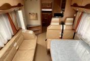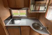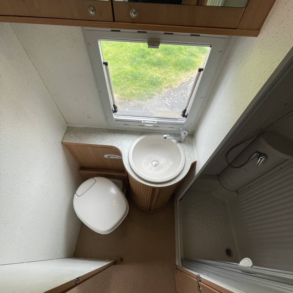 To the rear, externally, you have a large rear garage which is great for either simple storage space or being able to hold larger items such as motorbikes etc. Moving inside and again to the rear you have a good sized fixed bed which caters for 2 of the 6 berths and comes complete with a tv. Just forwards of this you have your washroom featuring a sink with taps, toilet cassette, separate shower cubicle and storage space. In your kitchen area you have a sink with taps, 3 burner gas hob, fridge, oven with grill and yet more great storage space. Moving into your main living area you have a great 4 seater dinette area with 4 additional seatbelts which allows 6 people to travel in total and also a large bench seat to allow for more people to be seated in this area. Finally, you have your extremely spacious over cab bed area to cater for the final of the 6 berths.