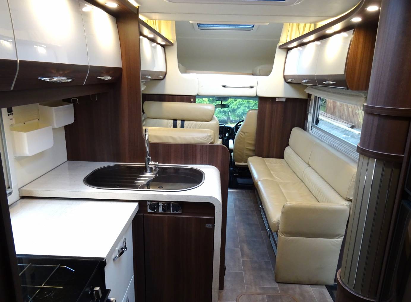 double bed over garage, fixed double bed over cab and large lounge area – A