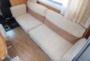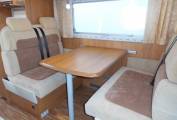 The comfortable centre dinette area can easily seat everyone at meal times and can be made up into a double bed in the evening and there are upper lockers and under seat storage available. Opposite to the dinette area is the reclining side sofa offering a place to relax, watch the TV or seat additional guests, plus then at night this can be a further sleeping option, as it can be used as a single bed. Above is a large skylight giving the living area a light and airy feel. Over the cab is a good sized double bed, which easily lifts up and out of the way to aid access to the cab area.