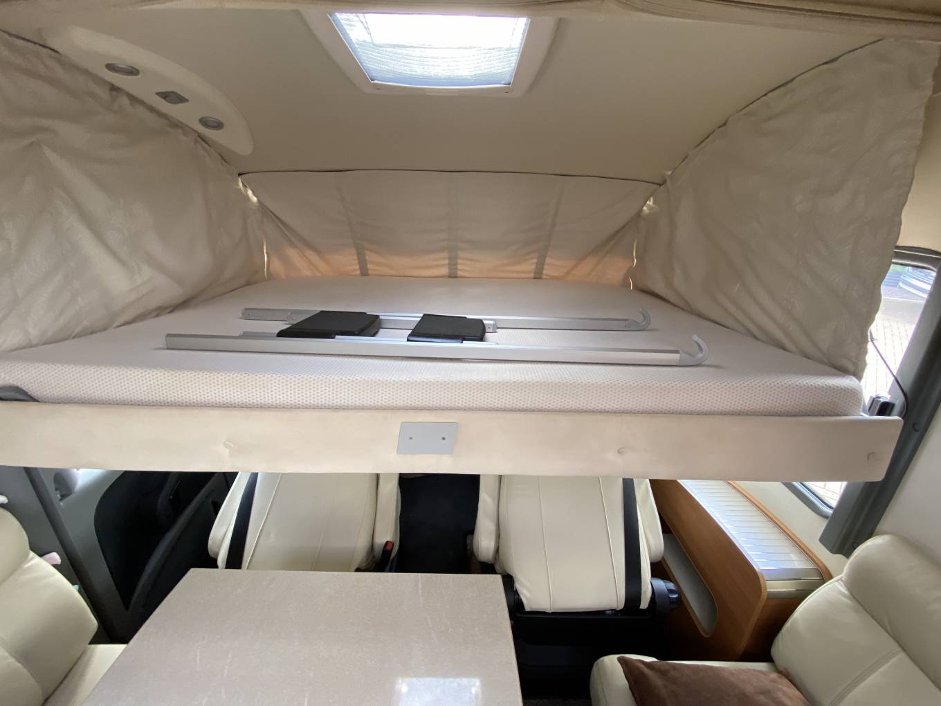 From above the A Class Cab Area the large double bed easily pulls down.