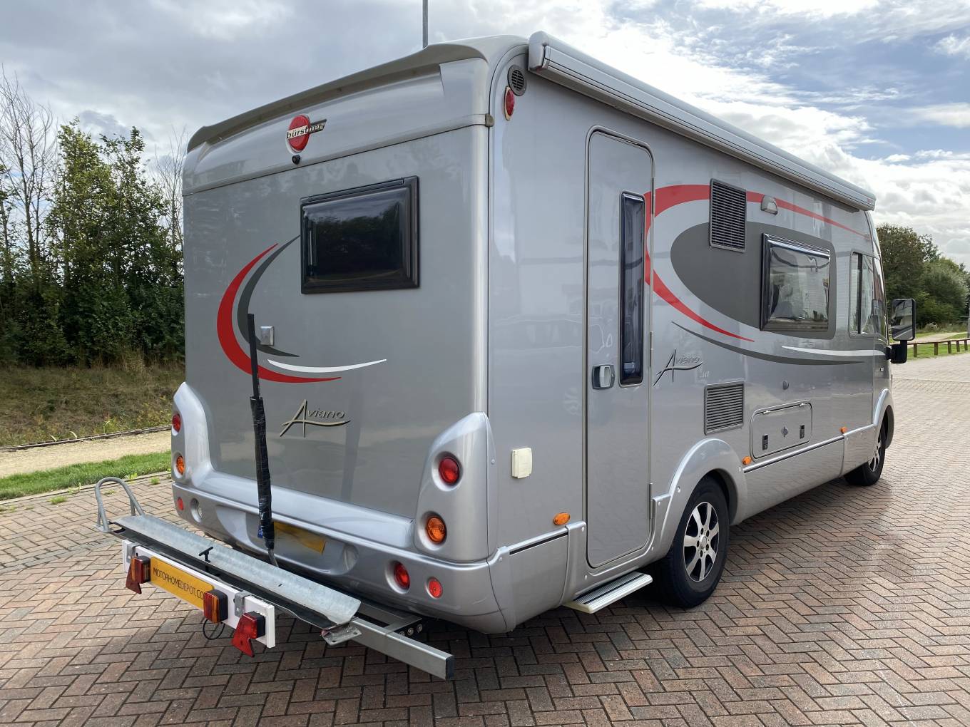 Outside a Fiamma Awning (with sides included), a TV aerial and a towbar have been fitted. Also a Scooter Rack (which is fitted over the towbar) is included with the sale.