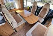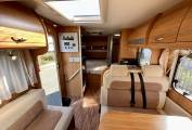 To the front of the washroom is a good-sized wardrobe. Centrally is the kitchen this has all you could need for cooking up a storm with a large 3 way fridge with separate freezer compartment. The oven and grill sit above. Opposite is the 2 burner gas hob and sink with infill for when you need to utilize more work surface as well as a place to rest to the hot pans. There is a built-in extractor fan over the hob and plenty of storage above and below for the groceries. Towards the front is the very sociable lounge this is made up of an "L" Shaped lounge which houses 2 extra travelling seatbelts as well as bench settee and the front travelling seats which also swivel around to really open up the lounge. And the A-CLASS drop down cab bed which is large bright and airy.