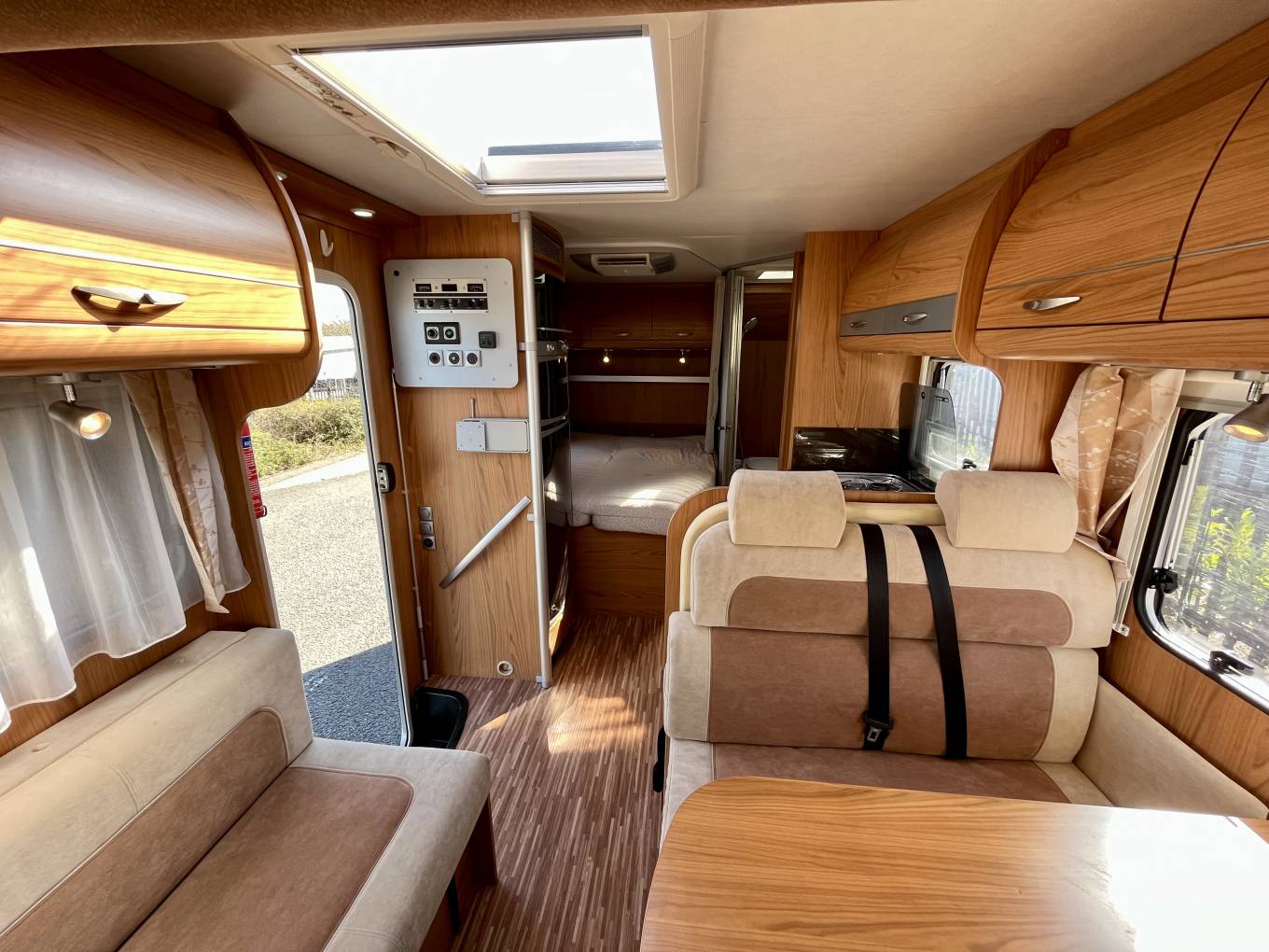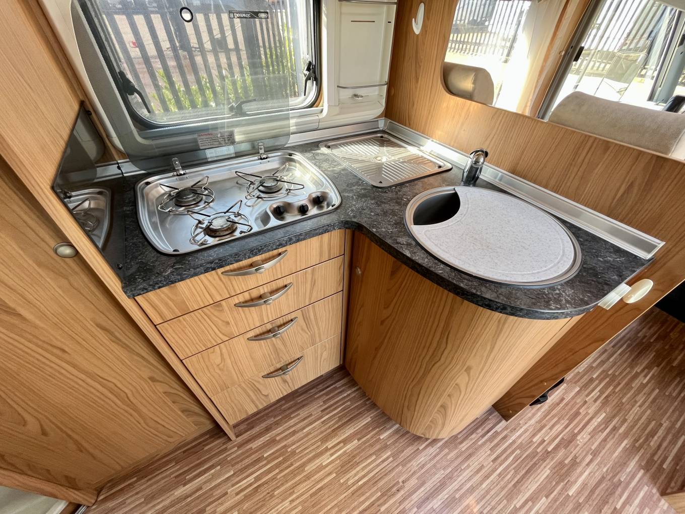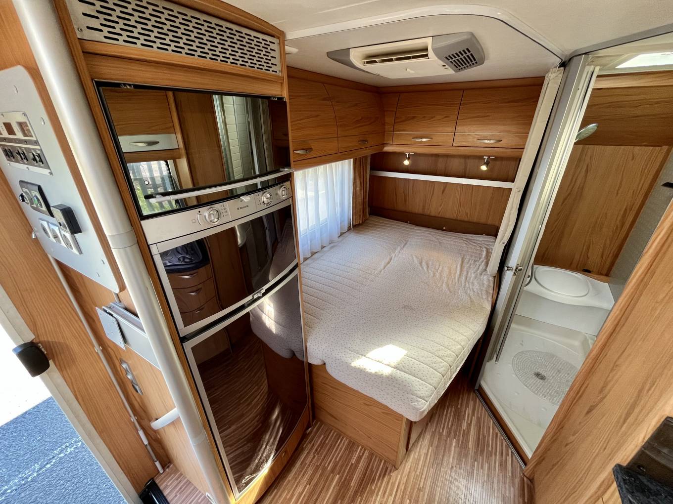 2008 A-CLASS 4 berth Burstner Aviano i684 based on the Fiat Ducato 2.3 diesel chassis. The layout of this motorhome is fixed french rear bed. The fixed bed has great storage underneath and wrap around overhead lockers. There is also a privacy curtain for when you have guests over. To the nearside is the washroom which is a great size. There is a bench cassette electric flushing toilet, shower with screens so you don't get the rest of the washroom wet, corner hand basin, vanity mirror and storage for the toiletries.