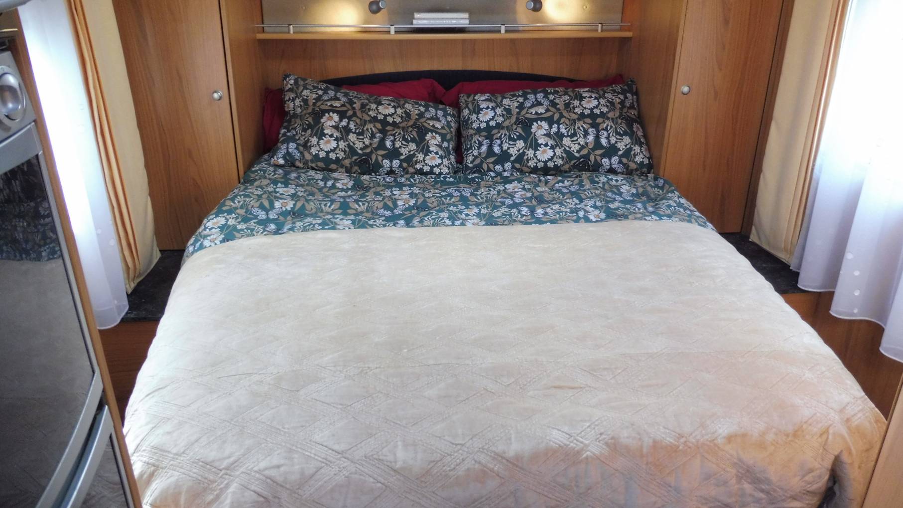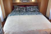 The main feature of this beautiful motorhome is the rear bedroom with fixed island bed, no more climbing over each in the night, with his and hers wardrobes and overhead lockers, wall mounted TV. Truma gas and electric powered blown-air heating and hot water heating, wood effect flooring, black-out blinds and fly-screens throughout.