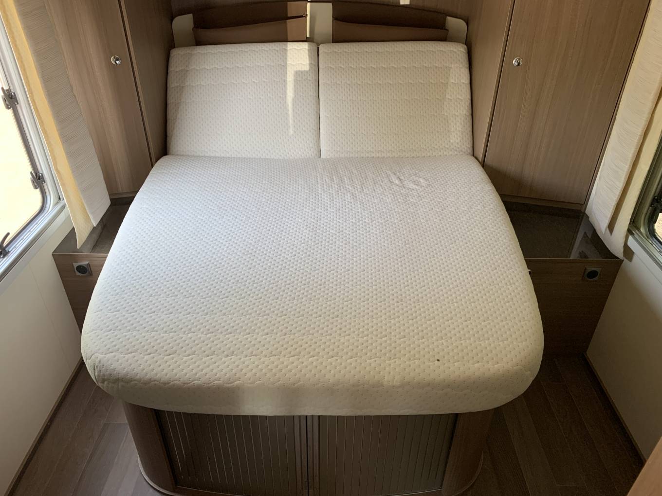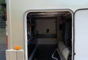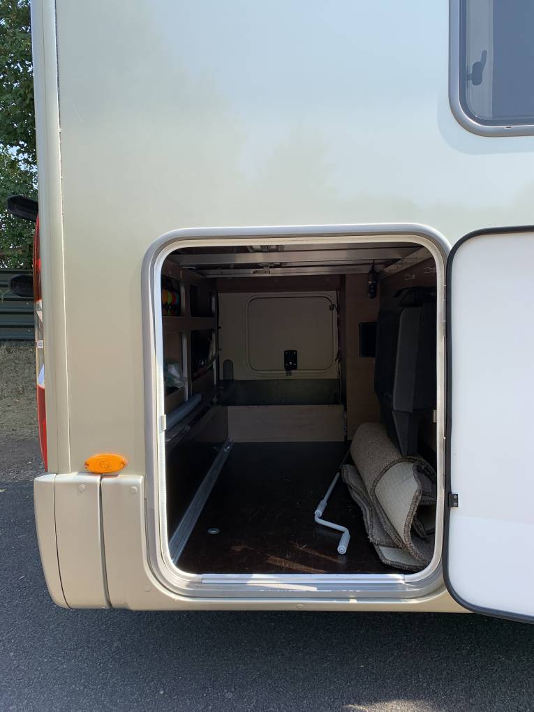 This motorhome can comfortably sleep and travel up to 4 people. At the rear you have the large double well desired Island Bed that has surrounding storage space. The rear bed sits on top of the large garage that you can access from outside of the motorhome and gives you enough storage space for those long adventures.