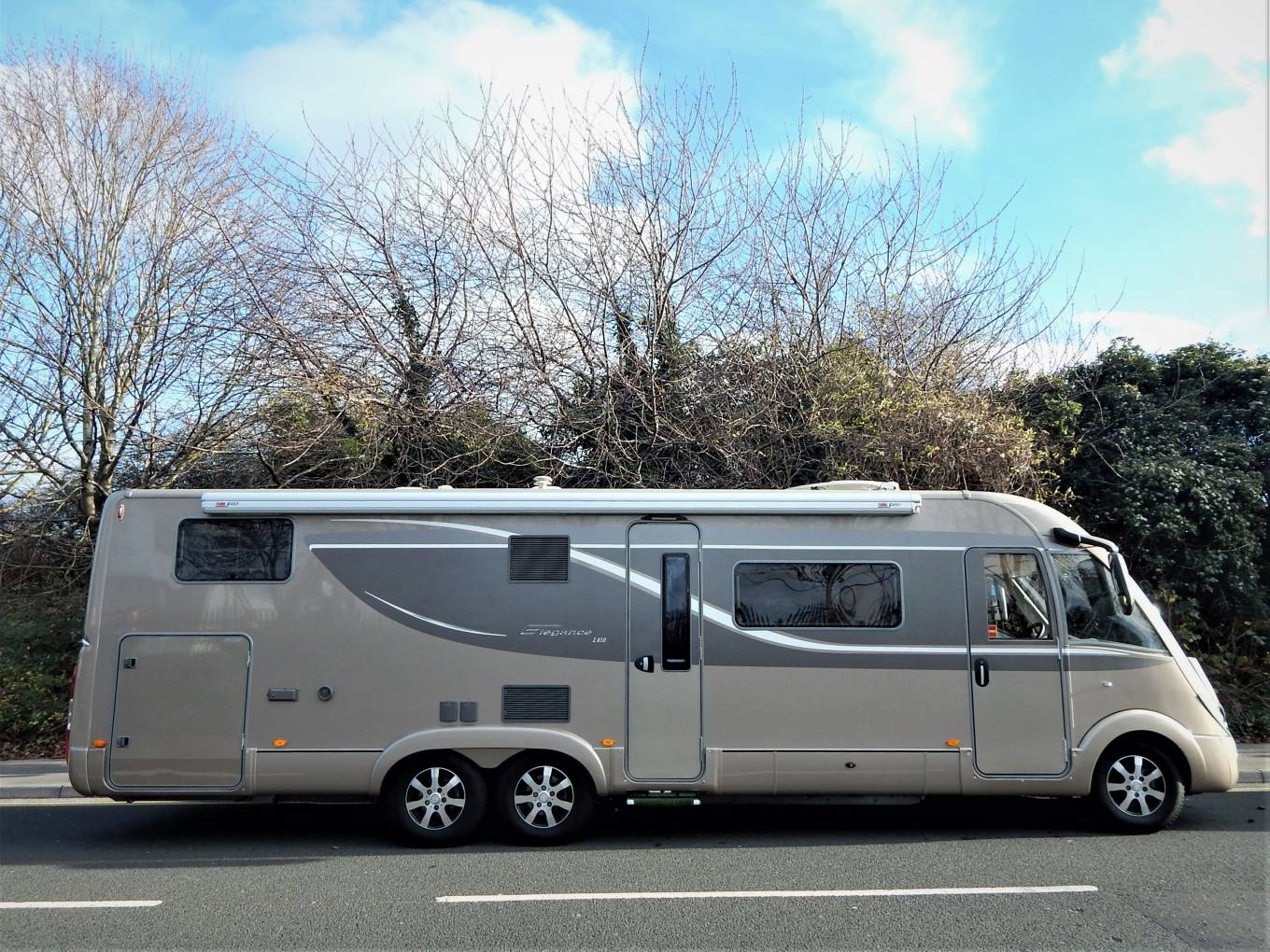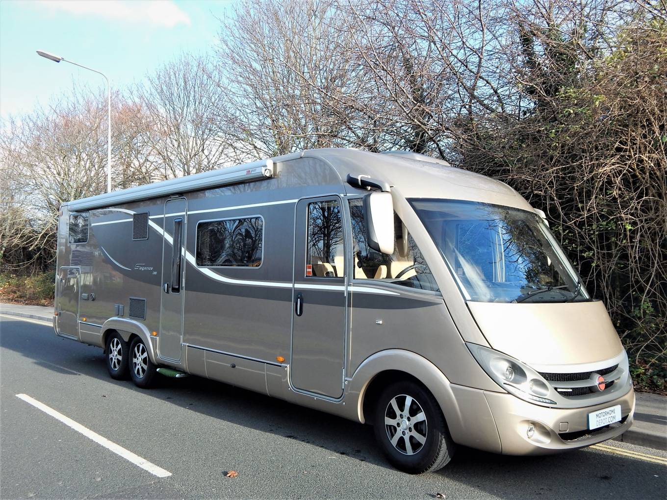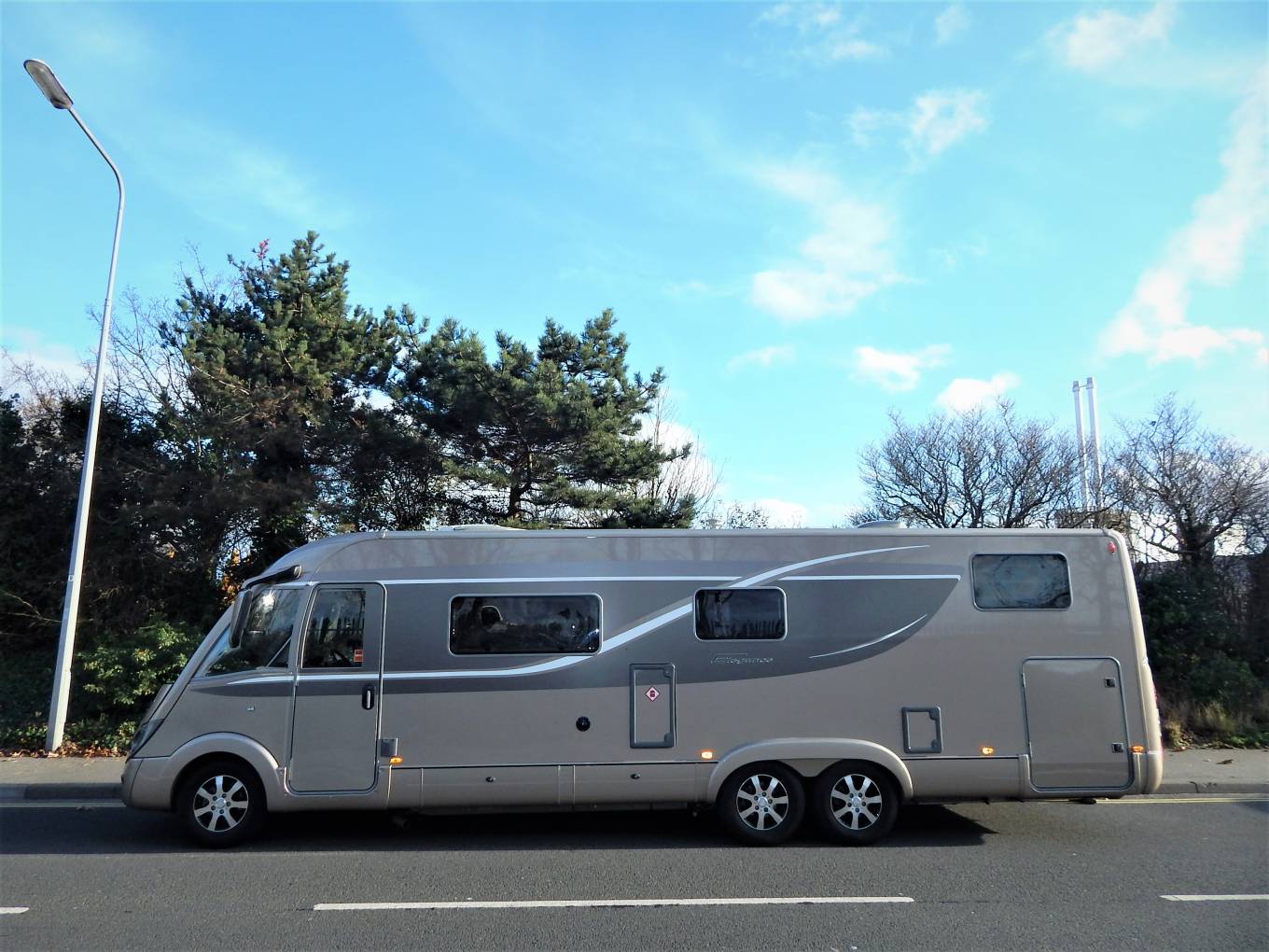 Stunning example of Burstners Flagship Elegance model in Opale Metallic with Ferra Leather, the i 810G on a Tag Axle Heavy Chassis plated at 5250KG. Powered by the Euro 5+ 3.0 TDI engine 180PS with the Comfort-Matic 6 speed Gearbox. Only 6637 miles from new and 2 owners, the vehicle is presented in excellent condition having had lots of updates to equipment recently.