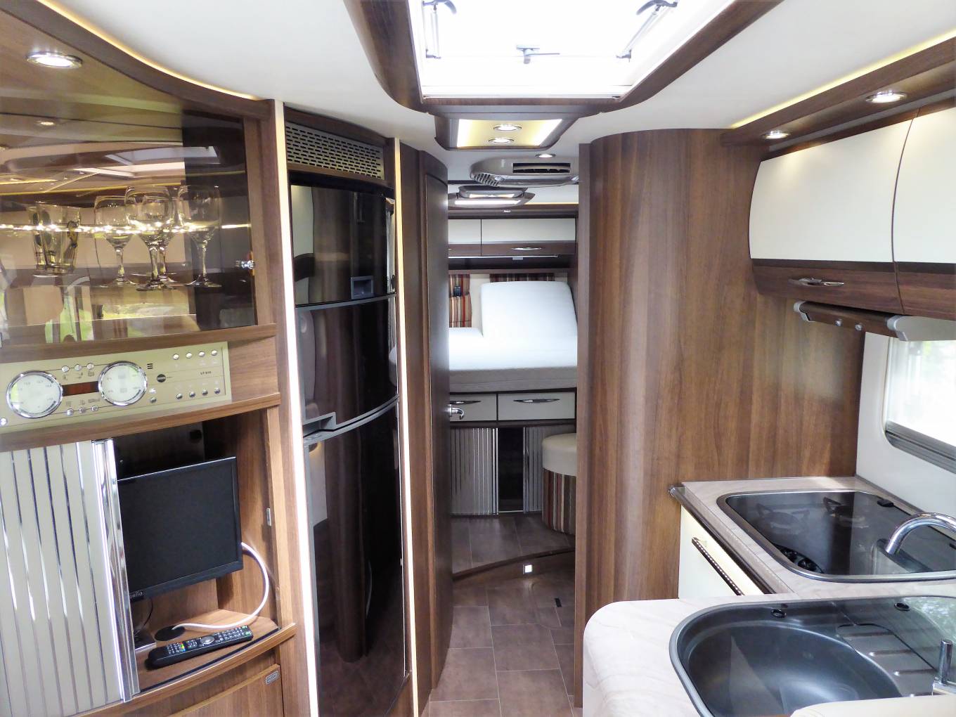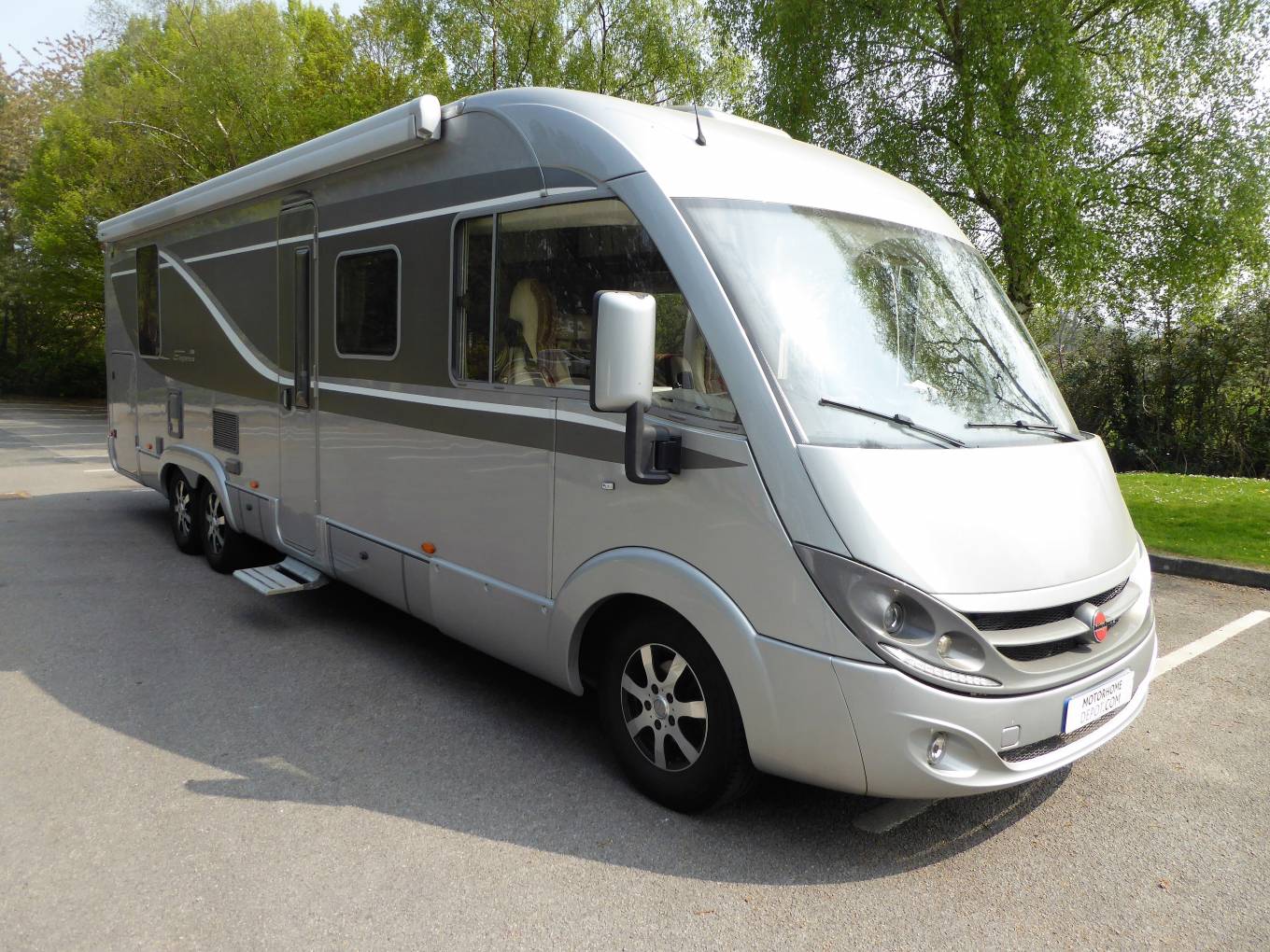 Call with any questions on 01423 609985. New lower price. This is a fantastic tag axle Burstner Elegance i-890, gold coloured, A class motorhome that comes to market very rarely. First registered in December 2012, it has travelled only 34,000 miles and is stunning both inside and out. Externally it benefits from a reversing camera, gas BBQ point, factory fitted detachable tow bar and massive full length Thule Ominstar awning with safari room, which has never been used by current owner. At the rear you will find the garage with plenty of storage space and where the shower point is located ideal for washing off boots, bikes, dogs and children. Forward is a small locker opening near the habitation door that then stretches the full width of the motorhome underfloor and is ideal for skis, fishing rods etc... and is accessible from the other side of the motorhome too. Internally it is luxurious, at the rear there is a large island bed with 2 single mattresses with 2 positions either laying fully flat or sitting more up right to watching TV or reading a book. A nice touch is that the end of the mattress lifts to allow for a vanity mirror and storage to be accessed. All the fixtures and fittings have a fantastic high gloss finish throughout and there is plentiful storage space underneath each of the beds. There is a separate toilet with sink, then opposite there is a large shower with full enclosure. All the above can be separated from the main habitation area with privacy doors. In the kitchen you will find a large Dometic fridge and separate freezer with combined oven and grill above. Opposite is a worktop with a 3 gas burner hob, sink, extractor fan and again the finish on the worktops is excellent. Above you will find the Telair air conditioning system. In the front lounge there is an L-shaped sofa with 2 forward facing full seatbelts and another sofa opposite, all in a beautiful beige leather and muilt coloured cloth upholstery. In the cab both front seats swivel to create an ambient area for entertaining or relaxing and above is the electric drop down bed which is very accessible. As a with all A class the large windscreen gives a view that no other motorhome can match. It has fully automatic 6 speed Fiat Comfortmatic gearbox, multimedia centre including radio, CD, Bluetooth and sat nav. There are 2 televisions, 1 of which is the rear bedroom and the other can be found in the habitation area below the wine cabinet with storage for wine bottles and glasses. It benefits from the Alde wet central heating system, 2 solar panels and 2 leisure batteries, has a tracker system, criuse control, Thatcham alarm, bike rack and immaculate alloys and the original carpets stored below are included too. This really is a stunning motorhome and there are so few that ever come to market, so it should be viewed at the earliest opportunity near Otley, West Yorkshire. Part Exchanges welcomed on this vehicle, for further information and photos please call us on 01423 609985 quoting reference 86094