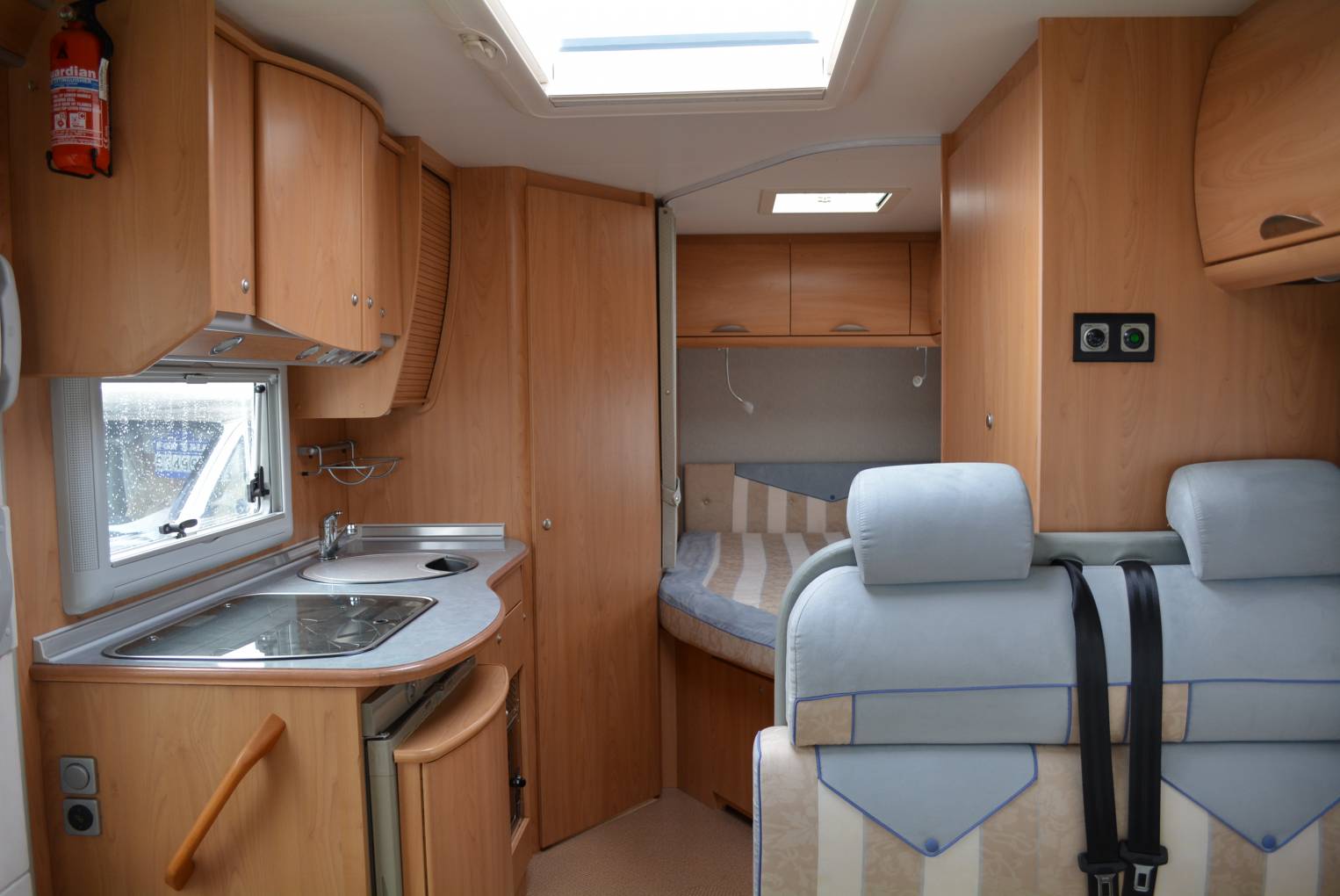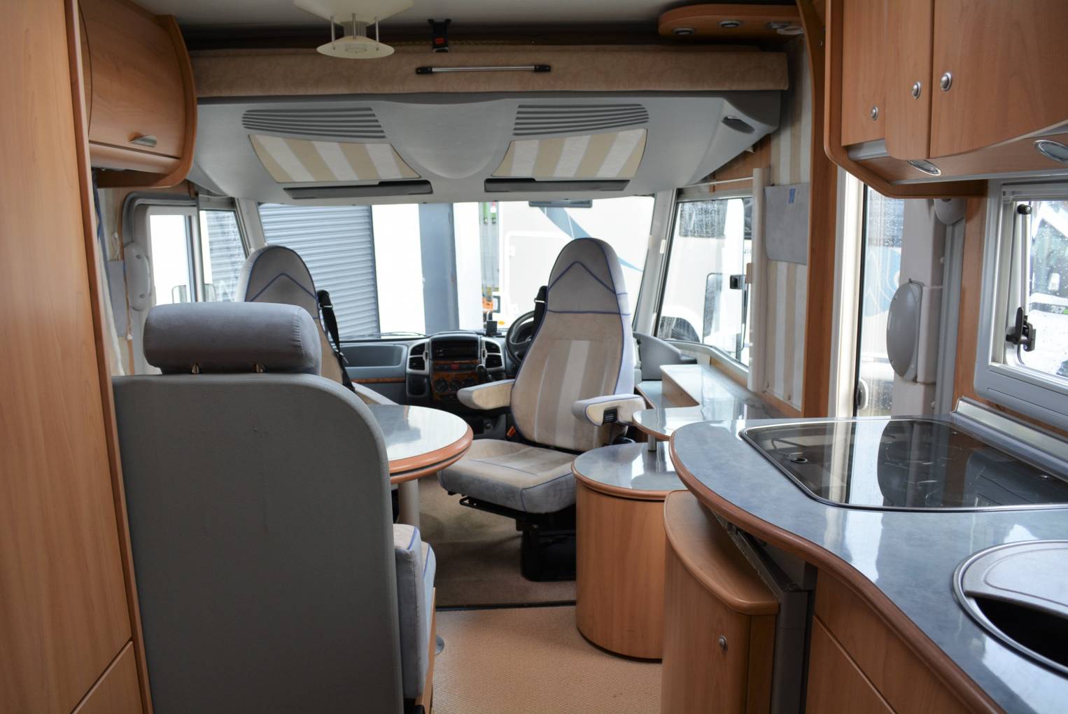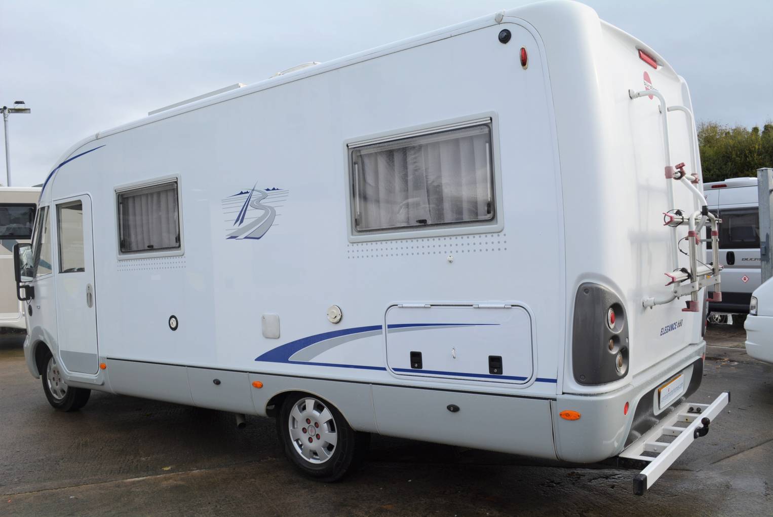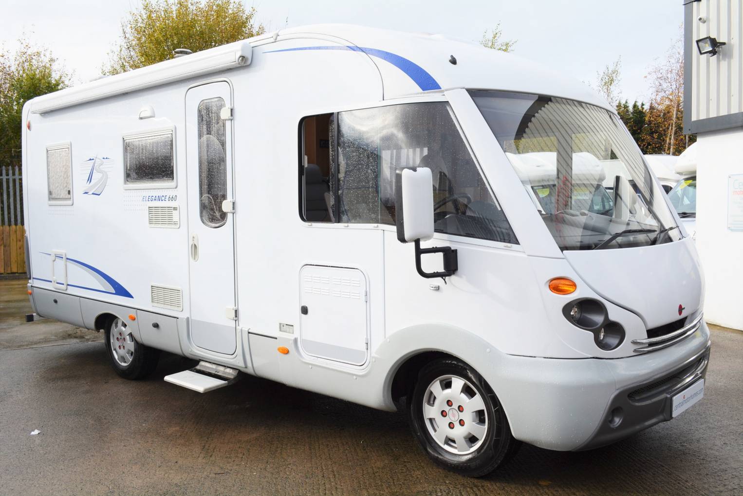 2005 Burstner Elegance I660 A Class 4 berth Motorhome for sale with a high specification list and a build quality matched by few as you would expect from this German marque. This proven layout provides sleeping places for 4 persons with a rear french bed and a large drop down bed over the cab with 4 dedicated seats for travelling. Refinement and comfort are evident throughout with a spacious lounge area and twin captains chairs, kitchen area with hob, 3 way fridge and oven. Washroom facilities are very practical and includes a separate shower. Other features include awning, tow bar, bike rack, solar panel, twin leisure batteries, inverter unit and alloy wheels. Fiat Ducato 4000kg chassis with an overall length of 6600mm. A full engine service has been fitted recently including a new timing belt kit and clutch. Sale includes full years MOT habitation service, gas certificate and 1 years warranty. PLEASE CALL FOR FURTHER DETAILS.