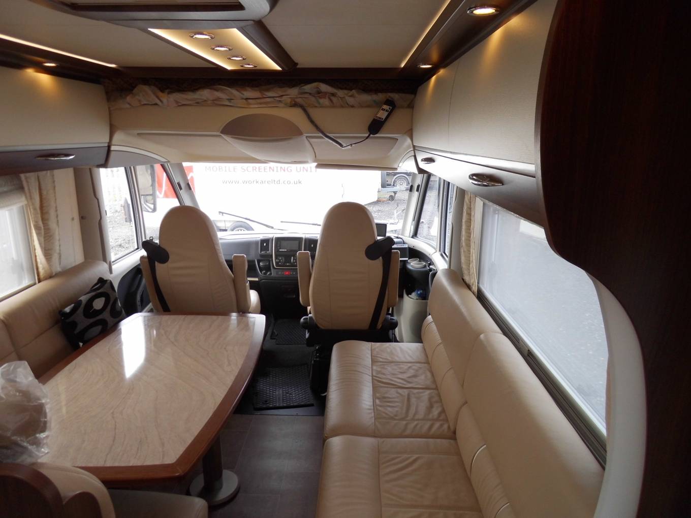 Take your touring to the highest level. With the high quality expected from this German brand, Burstner have covered all the bases with this superb A-Class. Your driving experience will be par excellence. Built on the 3.0 litre Fiat Ducato with automatic transmission and cruise control, you will glide effortlessly to your destination. The Aguti captain-style chairs clad in soft cream leather is just the start. The cab is further enhanced with aircon, multi-media entertainment system, sat-nav, reversing camera and a majestic view from the panoramic windows. Swivel the driving chairs and enter your home-from-home. The cream leather continues with twin sofas, a pair of travelling seats and multi-positional table. Kick back and listen to music, enjoy satellite television or a drink from the cocktail cabinet. Moving rearwards, we step into the kitchen, tastefully decorated in cream and brown with marble effect work tops. A 3-burner hob, oven grill and large fridge with separate freezer is finished off with massive storage drawers. Continuing back, a sliding door provides privacy for the rear bedroom. On either side of the corridor there is a washroom with WC and separate shower cubicle. Sleeping arrangements back here comprise elevated twin beds, a further television and plenty of storage. Further sleeping is provided through a huge double electric drop-down bed and a large single in the dinette area. The massive garage with shower fitting and a 6m awning encourages outdoor pursuits if you can be enticed outside. The motorhome is fully winterised which, with the excellent Alde heating system, means you can tour anywhere and in any weather. The renowned Strike Back alarm system ensures you and your motorhome are safe and sound. Please contact me for further details and many more photos. This vehicle is located in Bridgend.
