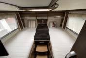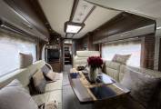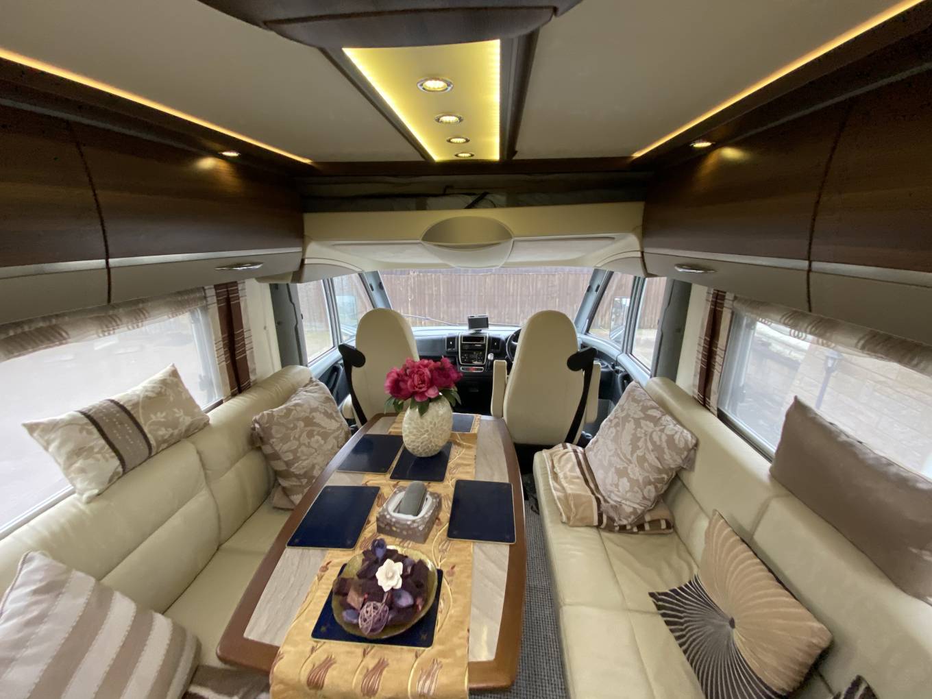 An electrically operated large double bed lowers from the ceiling above the cab area leaving the remainder of the lounge fully useable.