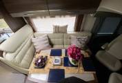 On entering via the habitation door, to your right is the spacious lounge comprising of two inward facing settees, two forward facing belted seats and Twin Swivelling Cab Seats. Central is a large dining table that moves in multiple directions. A TV DVD is included in this area