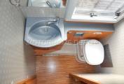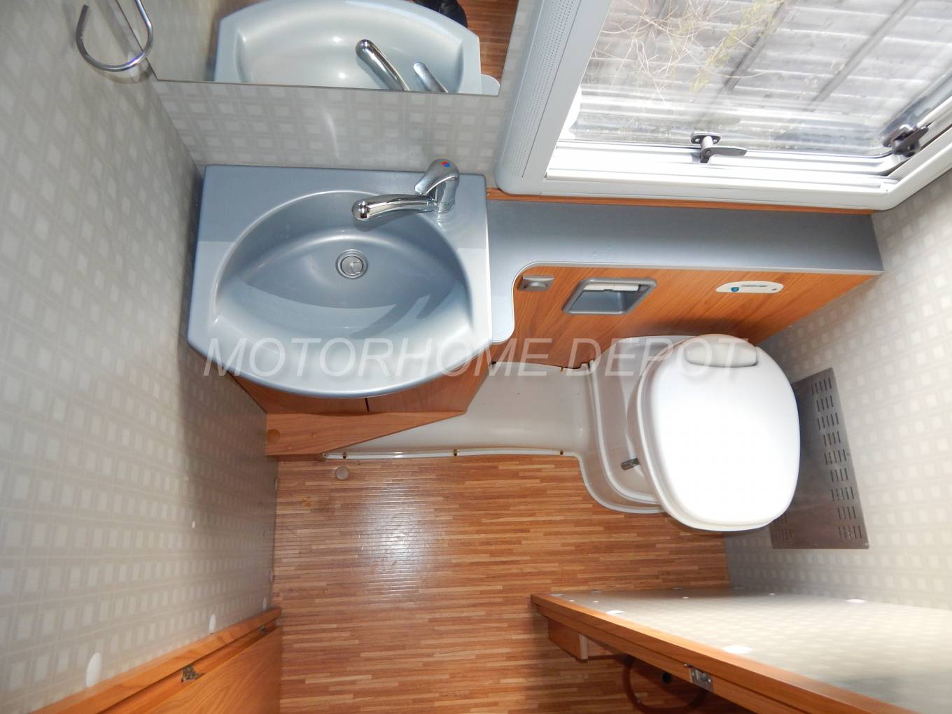 washbasin with chrome mixer tap, a Thetford cassette swivelling toilet with