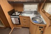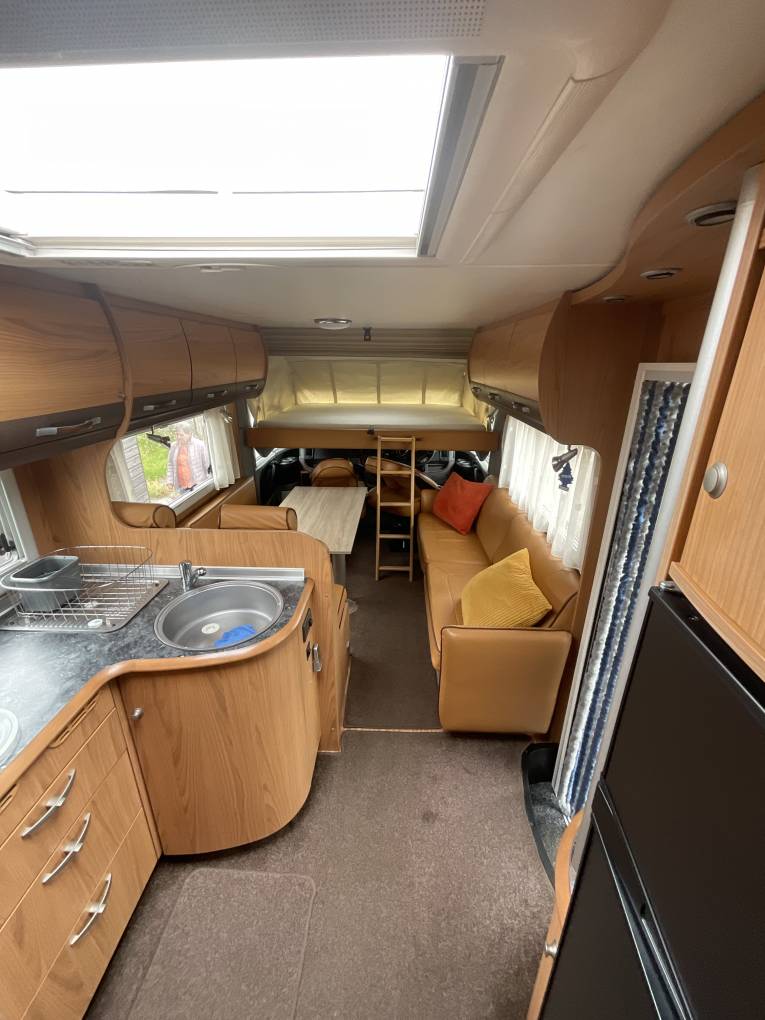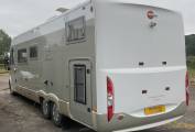 The Burstner Elegance i821 is the flag ship model, quality German built motorhome. It is based on the Fiat tag axle chassis with a 3.0 litre, 160bhp engine and a 6 speed manual gearbox. The rear suspension has been uprated along with the clutch to give an enhanced drive. This spacious motorhome has a transverse double bed in the rear over the garage, with a seperate shower enclosure next to the bed and a washroom opposite consisting of a toilet and sink with storage, the washroom door will close to turn the facilities into an ensuite bathroom. The well equiped kitchen area is located in the centre of the vehicle with a brand new Dometic fridge & separate freezer, sink with an additional drainer, oven/grill with 4 ring hob and extracter. The front lounge has been re-upholstered with a tan leather finish and comfortably seats 6-8 people, this will be the perfect place to unwind and watch Satalite TV on the avtex tv and soundbar,. The front cab houses the pull down double bed which can be closed off with a vertical blind.