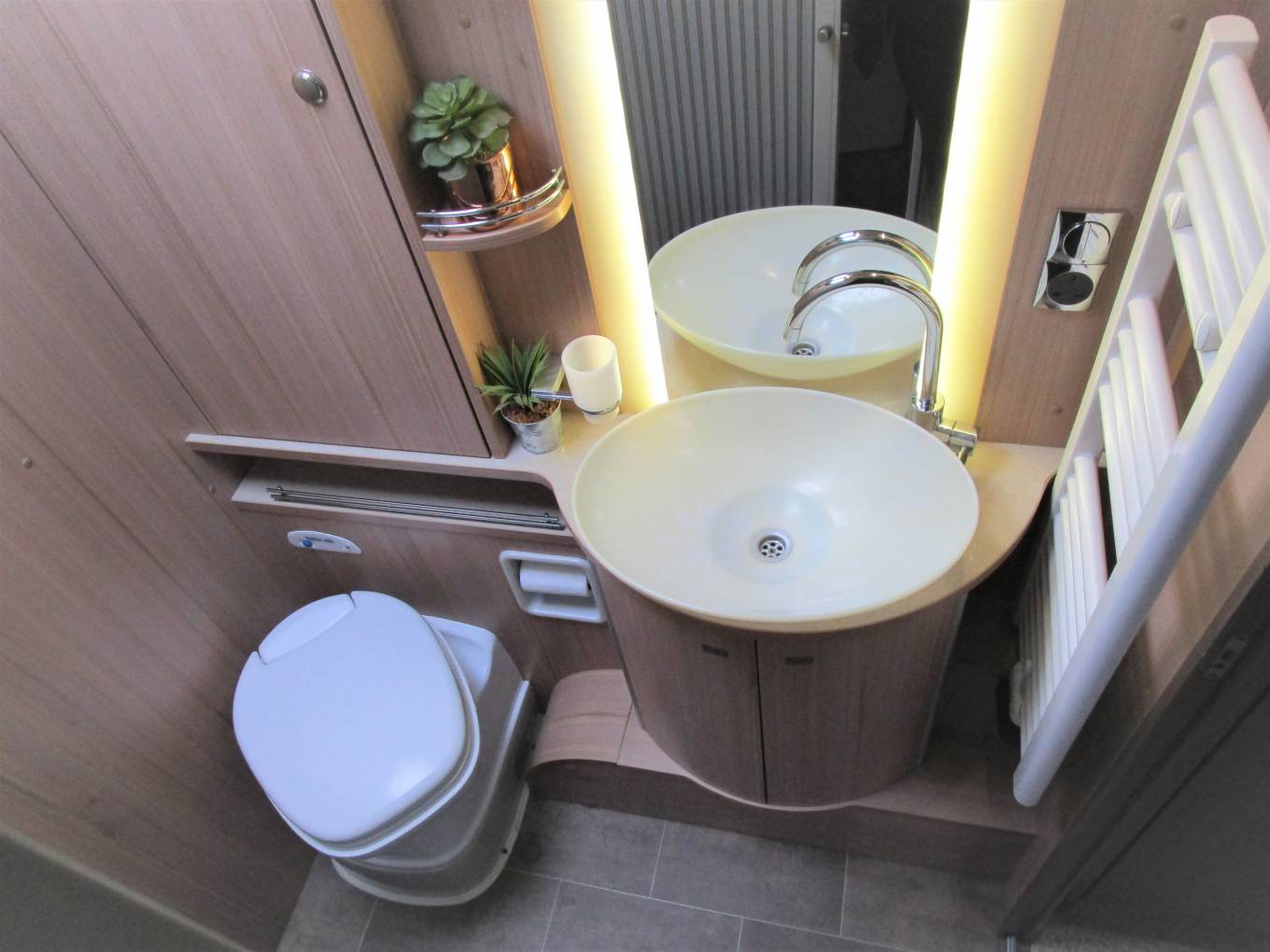 spacious and offers the Thetford cassette toilet, vanity handwash basin and