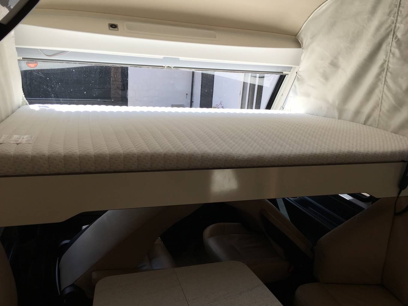 opposite and the two swivelling captain cab seats. Overhead cupboard space and