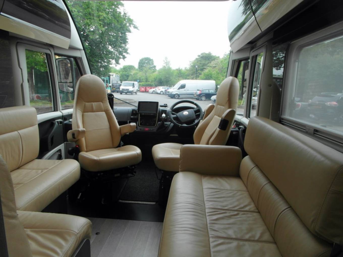 This is a stunning low mileage example of the Burstner Grand Panorama 920i on the desirable 3L Automatic Fiat Chassis, the vehicle’s layout comprises of a rear island bed over the garage with a front dinette boasting seatbelts and the large signature electric dropdown bed into the cab with a stunning view.