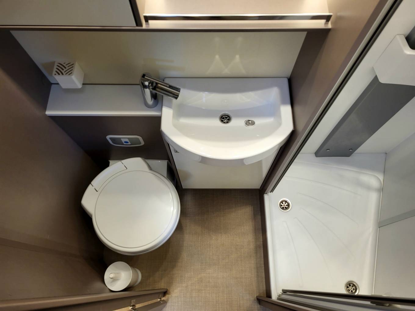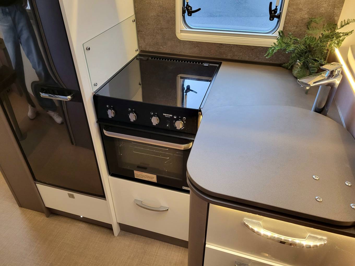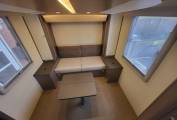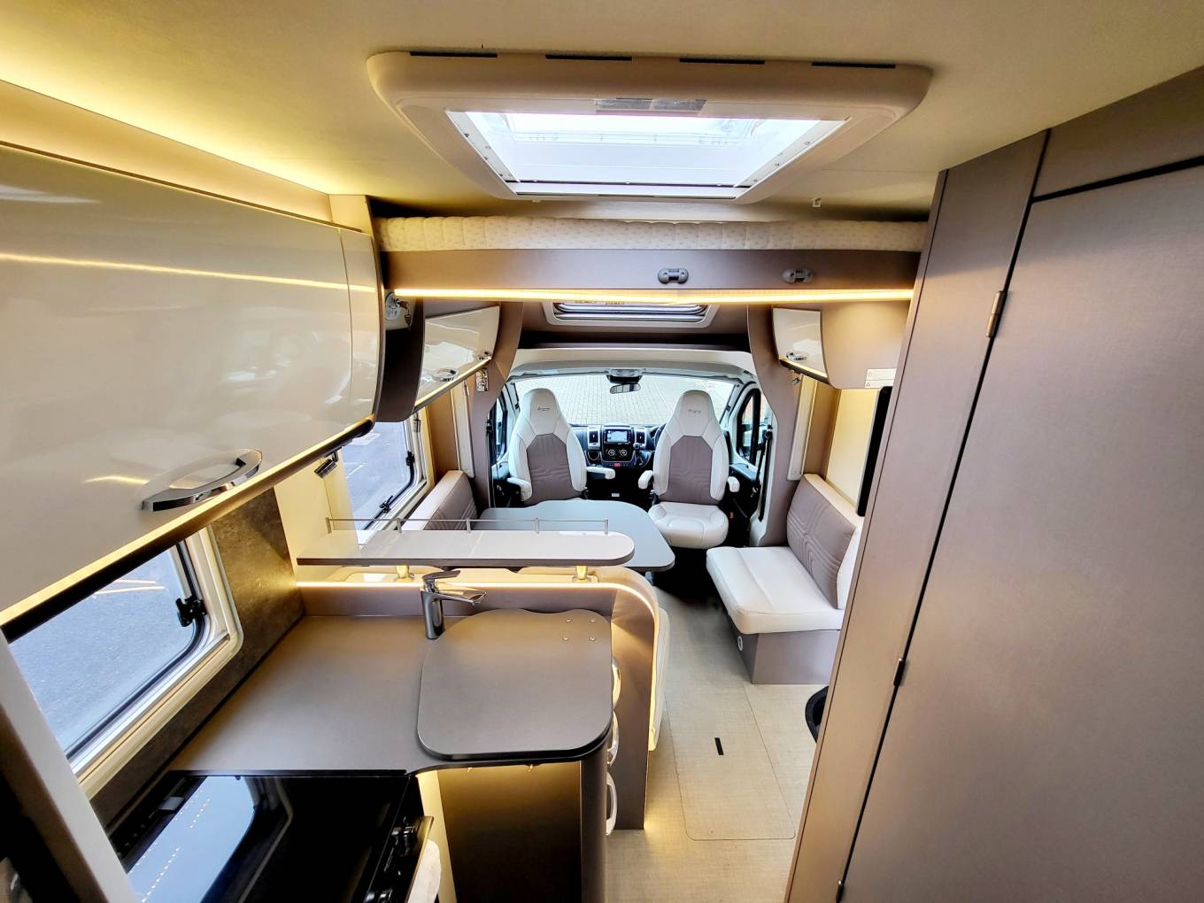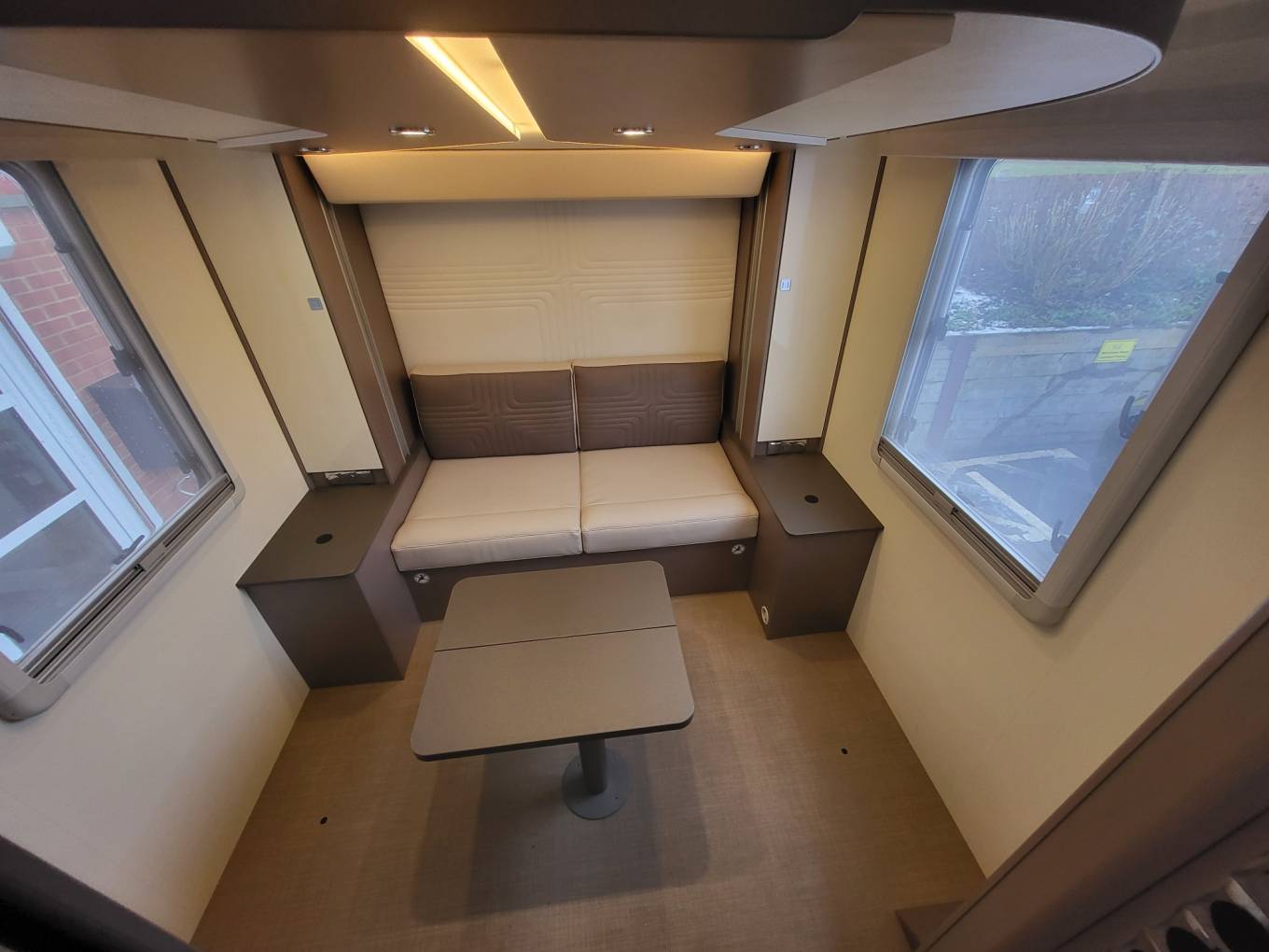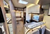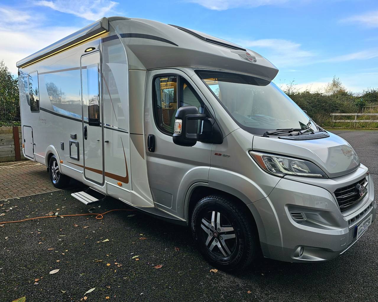 It's a 4 berth/ 4 belt vehicle with twin drop down beds front and rear with 2 separate lounge areas. It is the Fiat Ducato 2.3L 160BHP with the automatic 9 speed gearbox. This particular vehicle has been upgraded to the maxi chassis which offers a 4250kgs gross weight and a payload of 460kgs. It boasts an impressive 2.5m internal headroom.