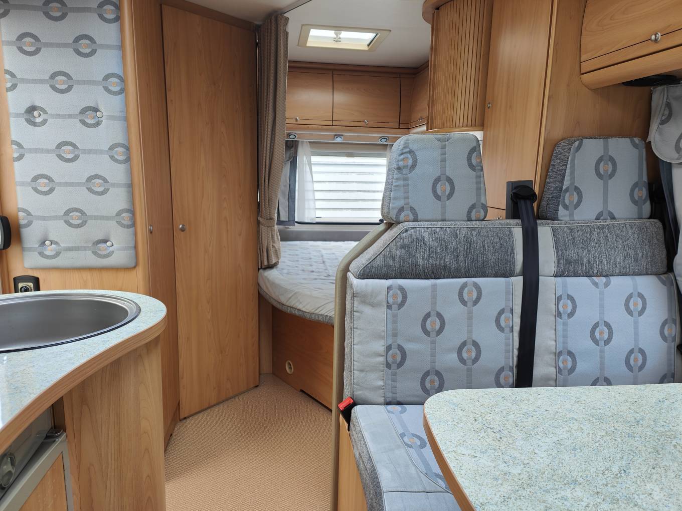 This a really nice example of the compact Burstner Harmony t585. At under 6 metres in length and 3400kgs max gross weight, this fixed bed motorhome has 3 berths and seatbelts for 4. With a separate shower to the rear, a compact but functional kitchen and a seating area for 4 that incorporates the rotating cabs seats, this Burstner truly is a go anywhere van. Based on the excellent Fiat Ducato cab this 2.8jtd derivative has abs and cruise control. This example has been stored in a barn for the last 14 years and is in outstanding condition with only 35000 miles from new. Twin rear cameras, awning, tv aerial and a microwave. Based in Kent and more pictures available.