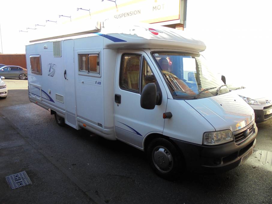 Burstner Harmony T615, this is a quality German built 4 berth, with 4 seat belts and fixed rear bed. It has been well maintained with good service history, including a cam belt change and has MOT till March 2022. At the front of the vehicle is the lounge area with side settee and 2 captains seats, in the centre is the kitchen area and to the rear is the bathroom with separate shower compartment and a fixed rear bed. There is plenty of storage with overhead cupboards and a large locker under the the rear bed. It comes with Alarm, Immobiliser, Blown Heating, TV Aerial, Awning, Rear Ladder, Roof Rack and Bike Rack. An excellent example, call for more photos and information.