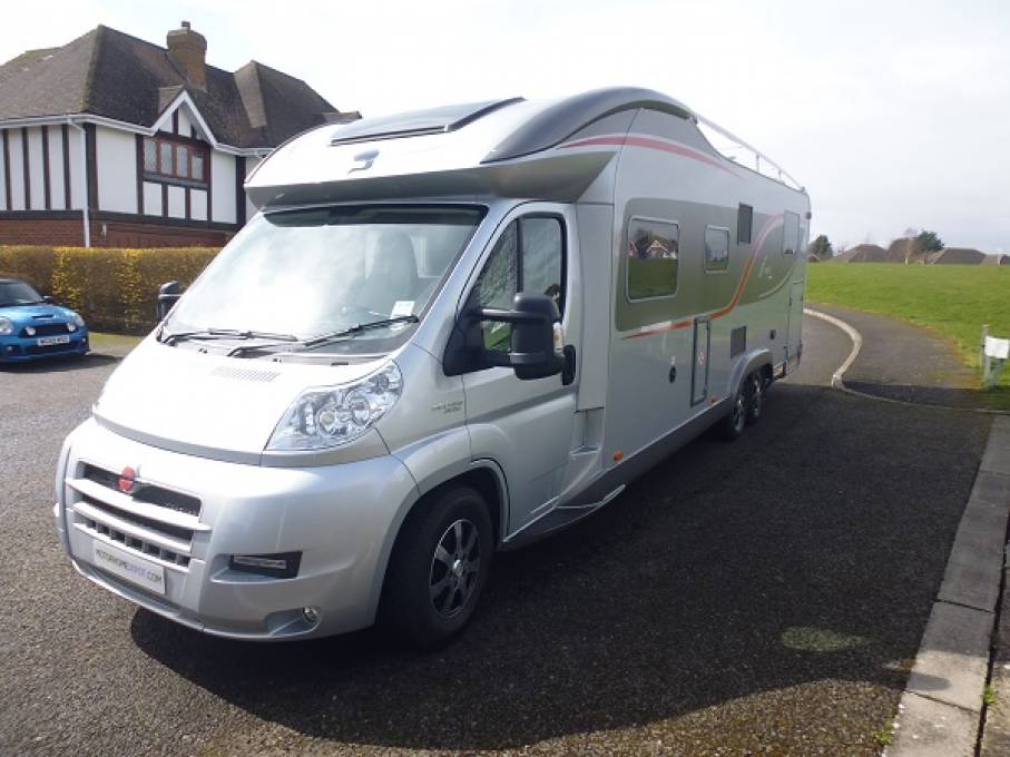 This is a near pristine example of Burstners flagship Ixeo i875G model. This beautifully kept tandem axle motorhome is based on the excellent Fiat ducato with the necessary 3.0jtd engine with an automatic gearbox and 180bhp. With cab aircon and cruise control, this vehicle is a delight to drive. With 2 singles to the rear and an electric drop down double to the front, this motorhome will suit a family as well as those that like their luxury and space. With an excellent kitchen and a superb washroom with separate shower, this van epitomises quality. With leather seating, solar panel, 5.0 metre Omnistor awning, 4x cycle rack, Thatcham approved category 1 Cobra alarm system, 2 x tv and dvds, 85cm self seeking Oyster satellite dish, 240 volt habitation aircon, alloy wheels, Alde wet heating system and underfloor heating, this motorhome wants for nothing. With only 7347 miles from new by one careful owner and habitation inspection completed april 2018, she is ready to go. Will come with a new MOT. Based in Kent and more pictures available on request. Please call Ian on 07941 410894