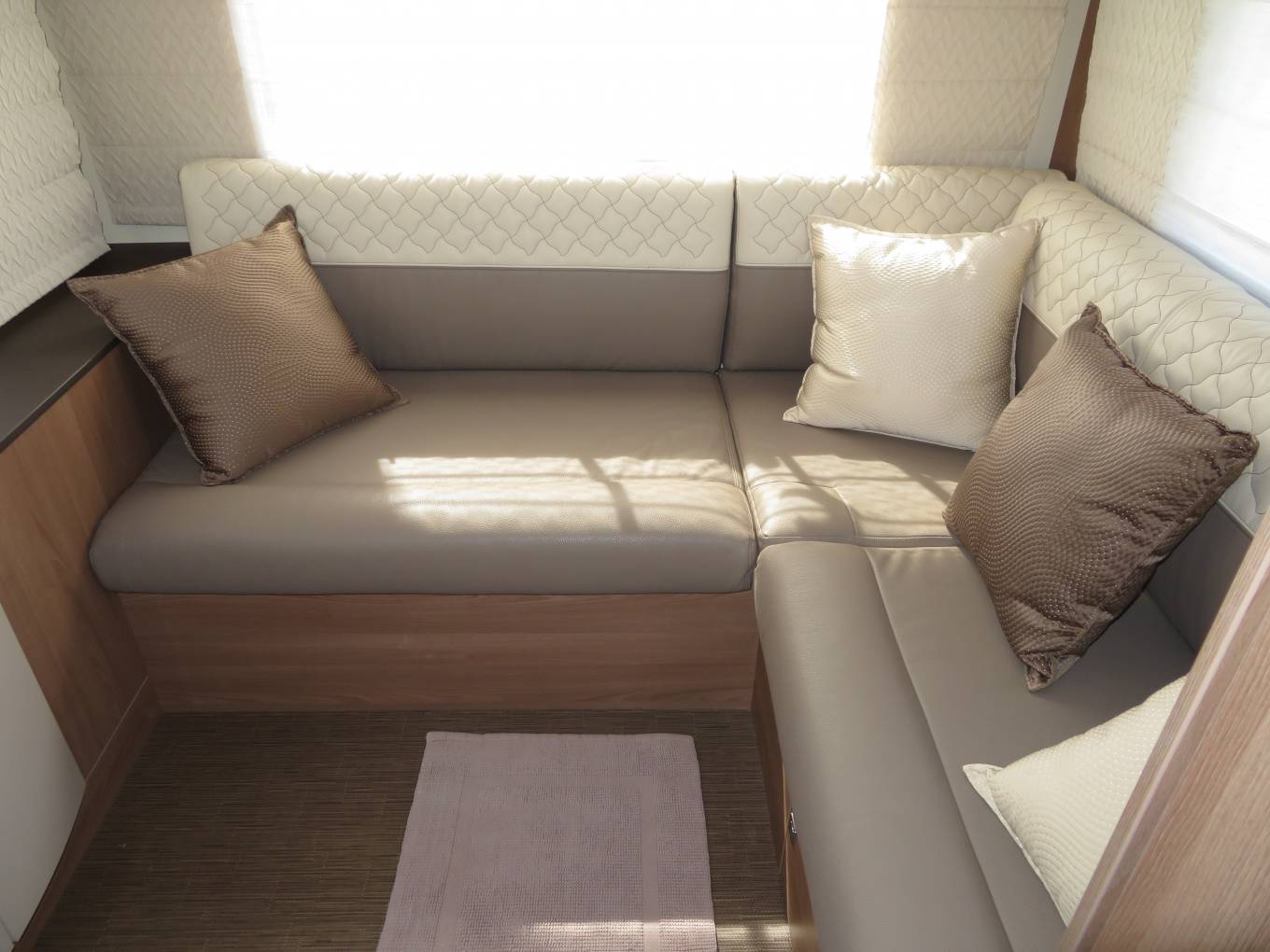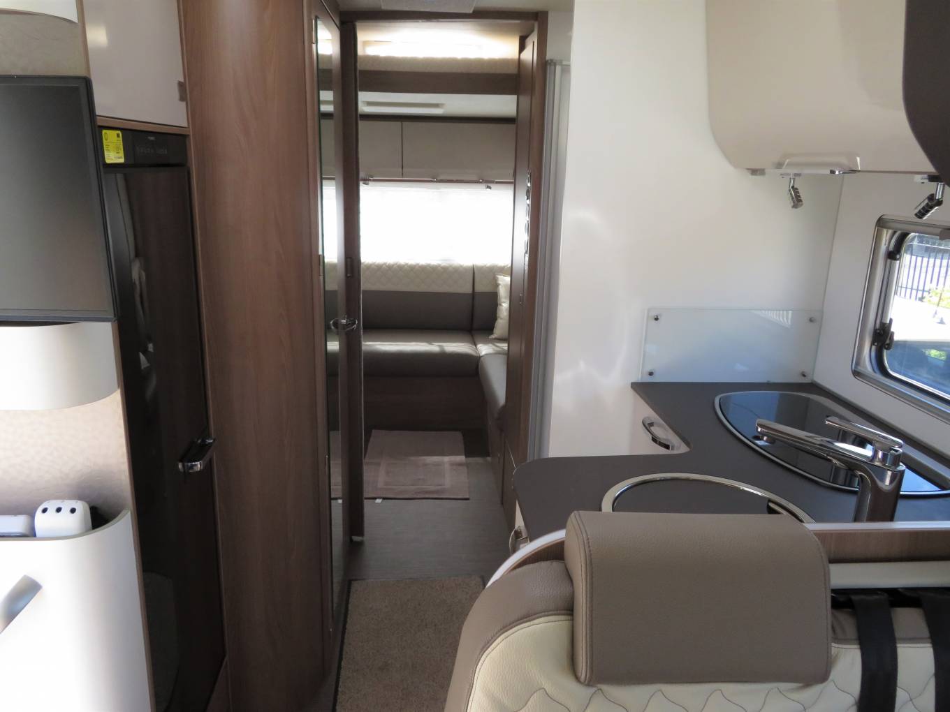 At the rear of the motorhome is an extremely comfortable, large L shaped lounge area with TV. This is the perfect area to put your feet up and relax.