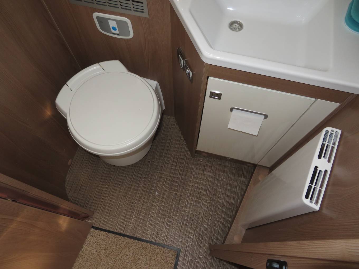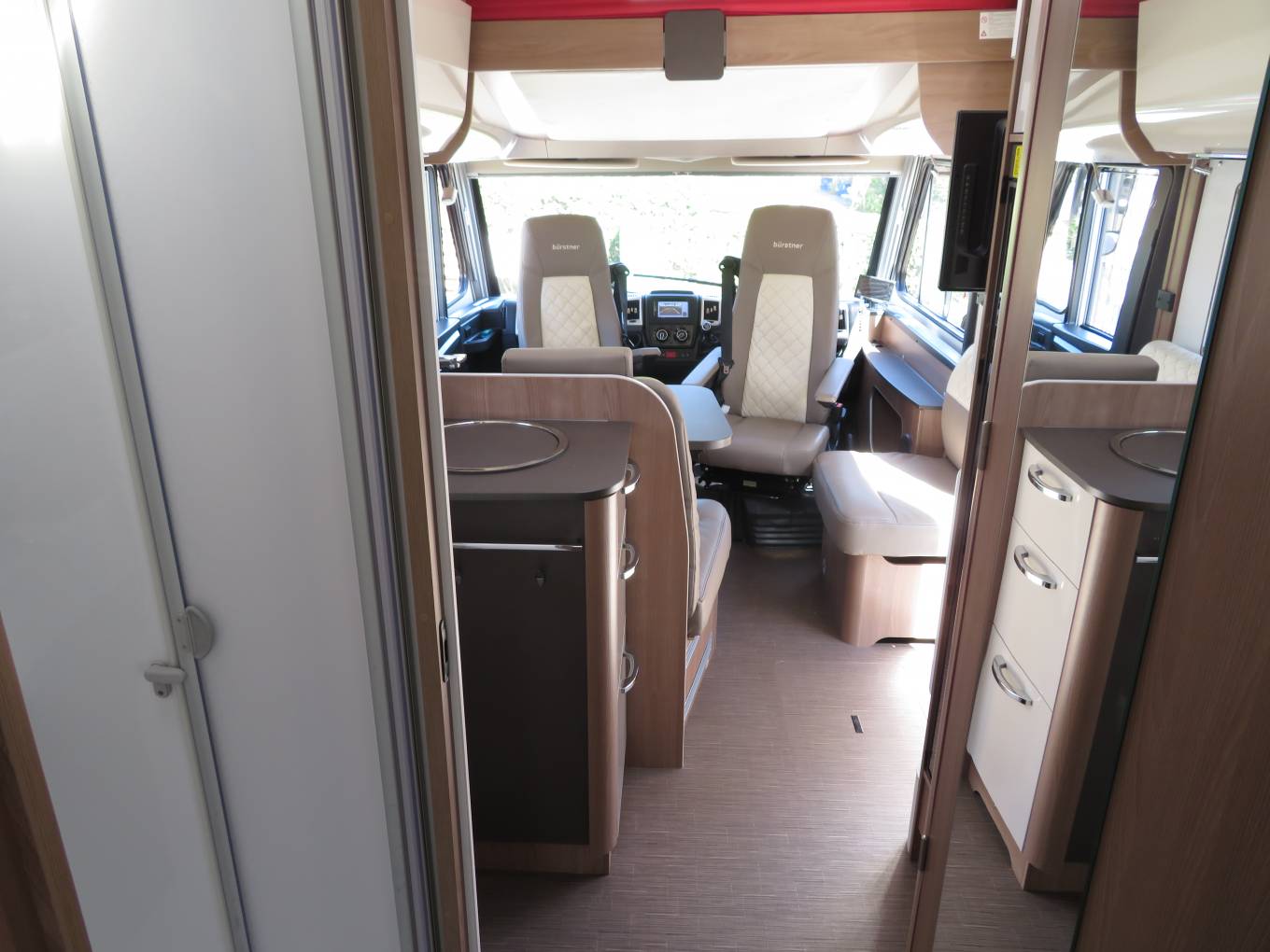 The Burstner has two double drop down beds for ideal night's sleep. There is a very generous over the cab double and a rear electric drop down double bed over the large rear lounge. The motorhome also boast a lovely washroom with separate shower, once again reflecting the luxury of this model. The Alde wet underfloor heating is also an exceptional extra in this motorhome keeping you warm and toastie should you wish to travel away in the winter months