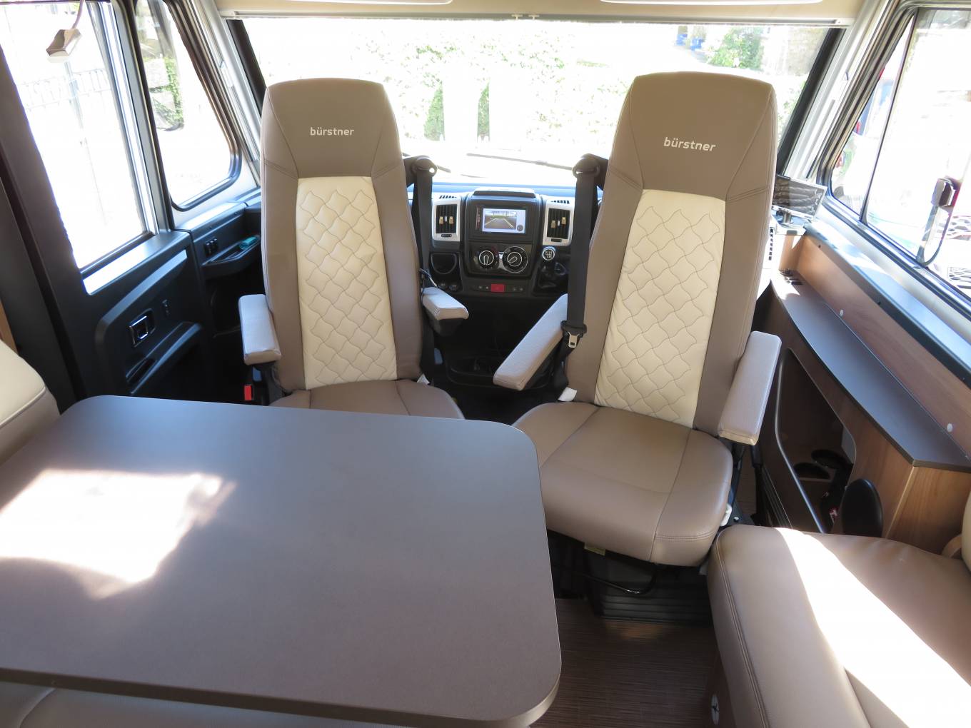 The beautiful Ixeo i744 has the upgraded 150 BHP 2.3 Litre engine and with the 6 speed manual gear box with cruise control, cab air con, sat nav, high and low reversing cameras. With the incredibly comfortable driver and passenger captains chairs it is an absolute joy to drive and travel around in. The two rear seat belts gives you 4 travelling belts in total so perfect to travel with friends in style.