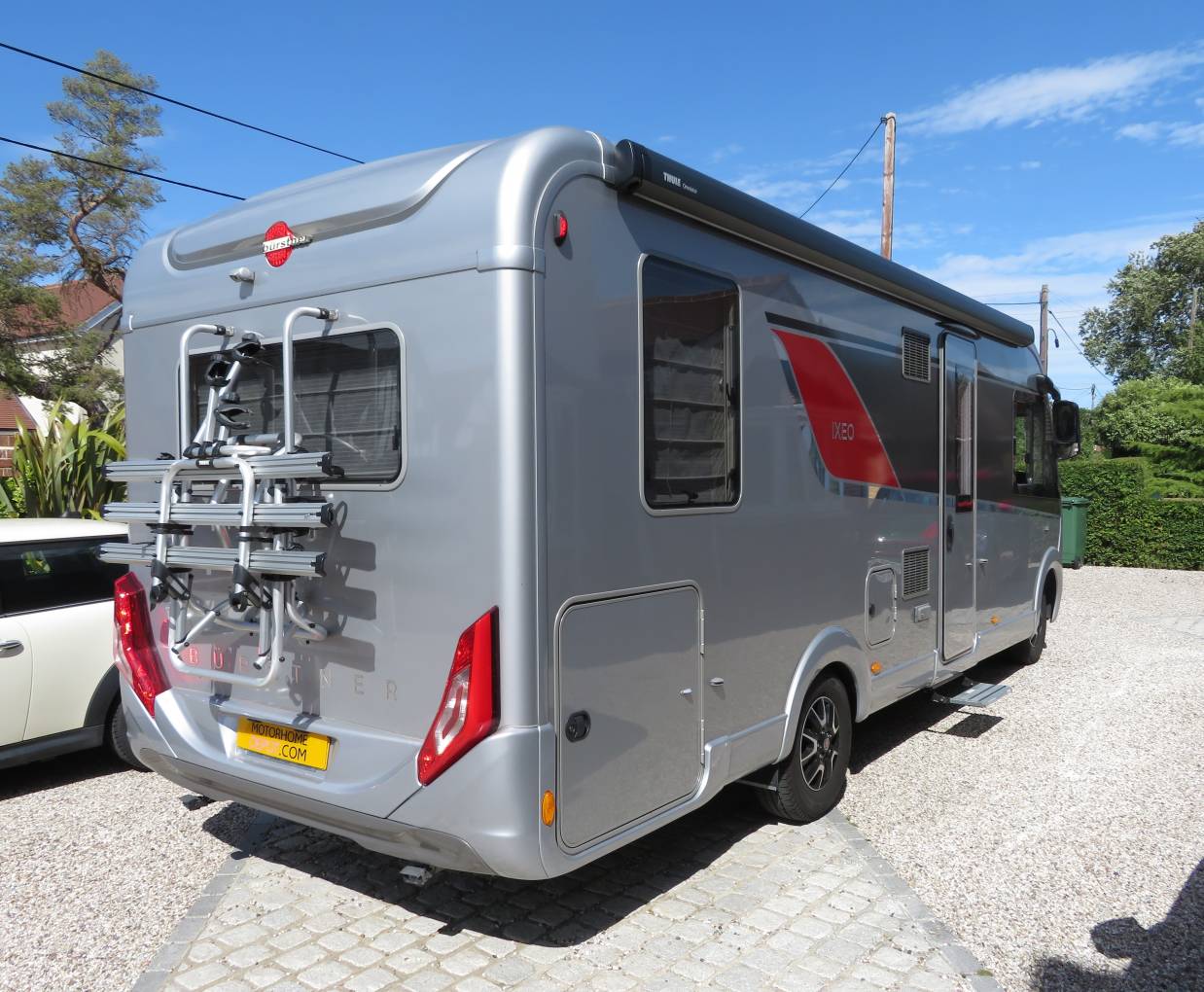The exterior of the motorhome is equally impressive with a generous heated garage, Thule awning and bike rack, 2 leisure batteries and external bbq point.
