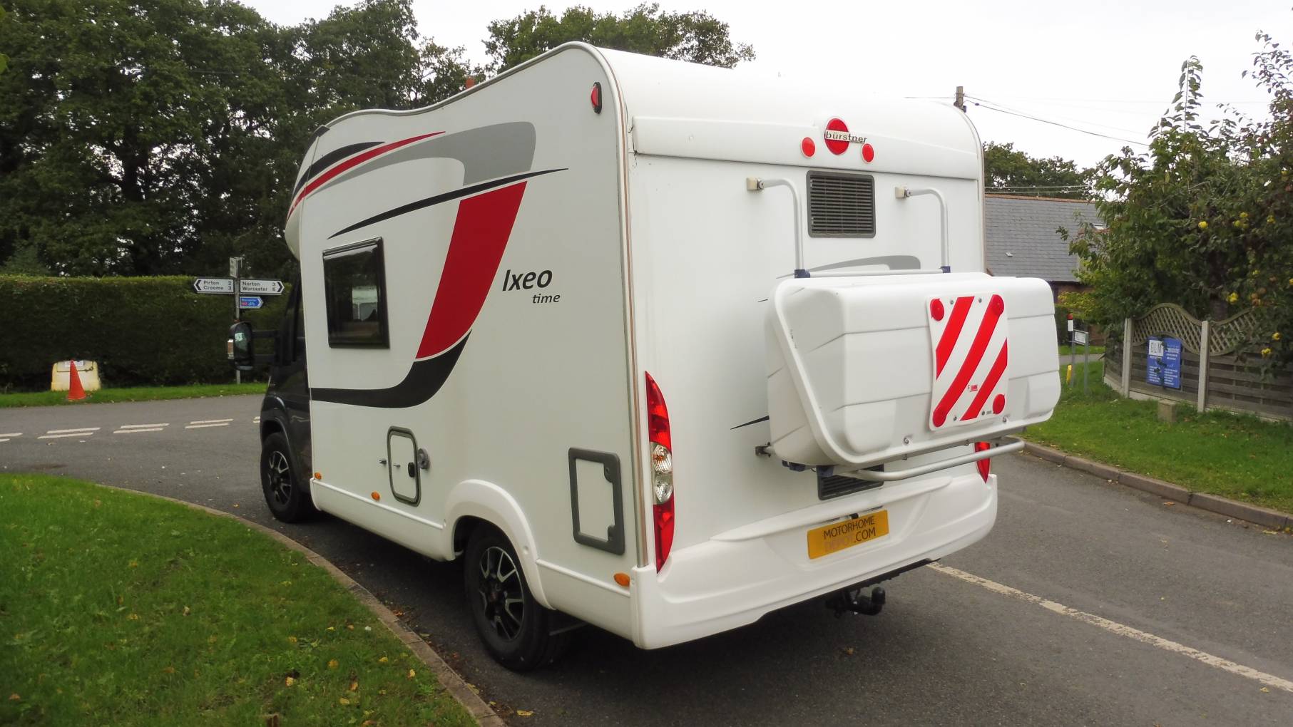Externally there is a wind-out awning, tow bar and cycle rack – the storage box pictured will be taken off and replaced with the cycle rack.