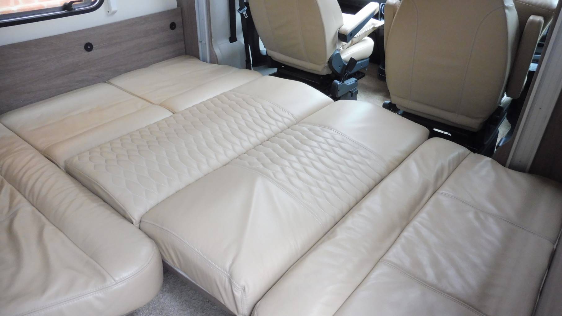 At night an electric double bed drops down over the lounge either all the way, or part way if you wish to use the lounge seating as additional sleeping accommodation.