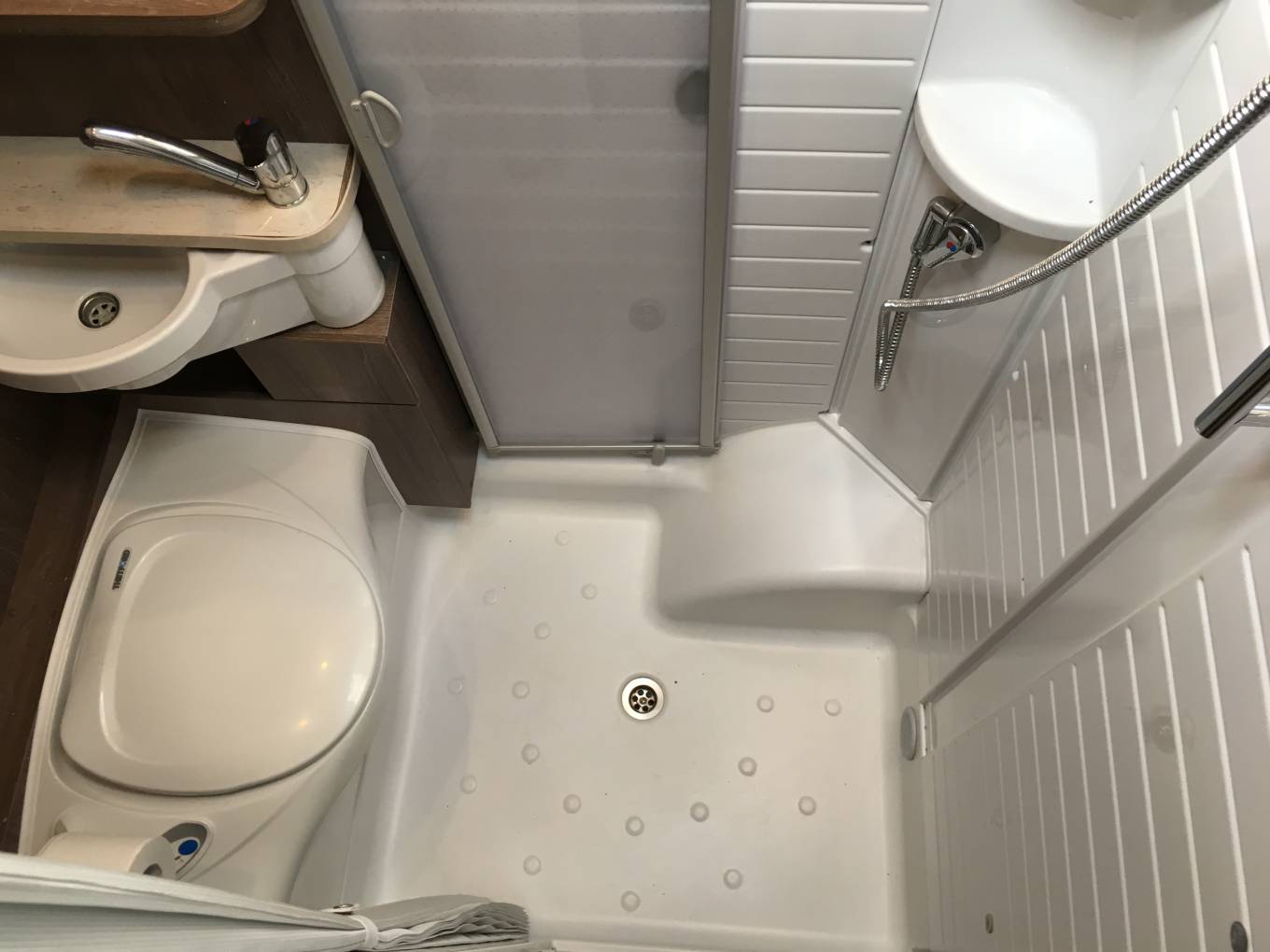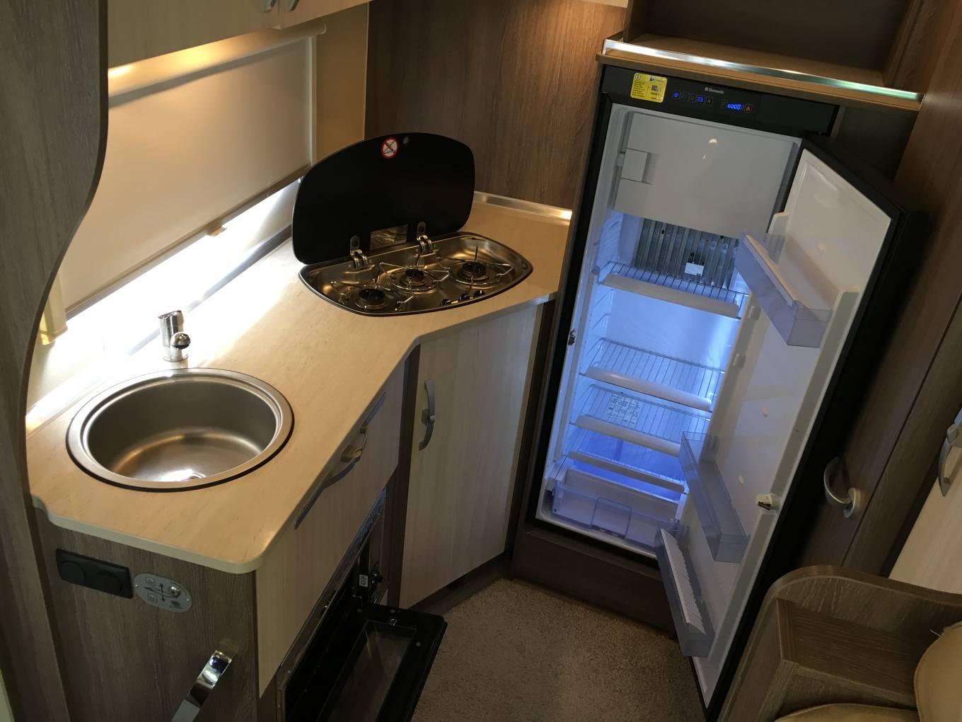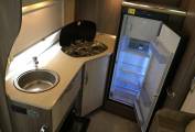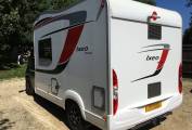 Outside includes two side lockers, external BBQ gas outlet, gas locker with two Gaslow system bottles,16 inch five spoke alloys, towbar, reversing camera, Thule Omnistor windout awning, toilet cassette locker, maintenance access locker and mains hook up point.