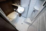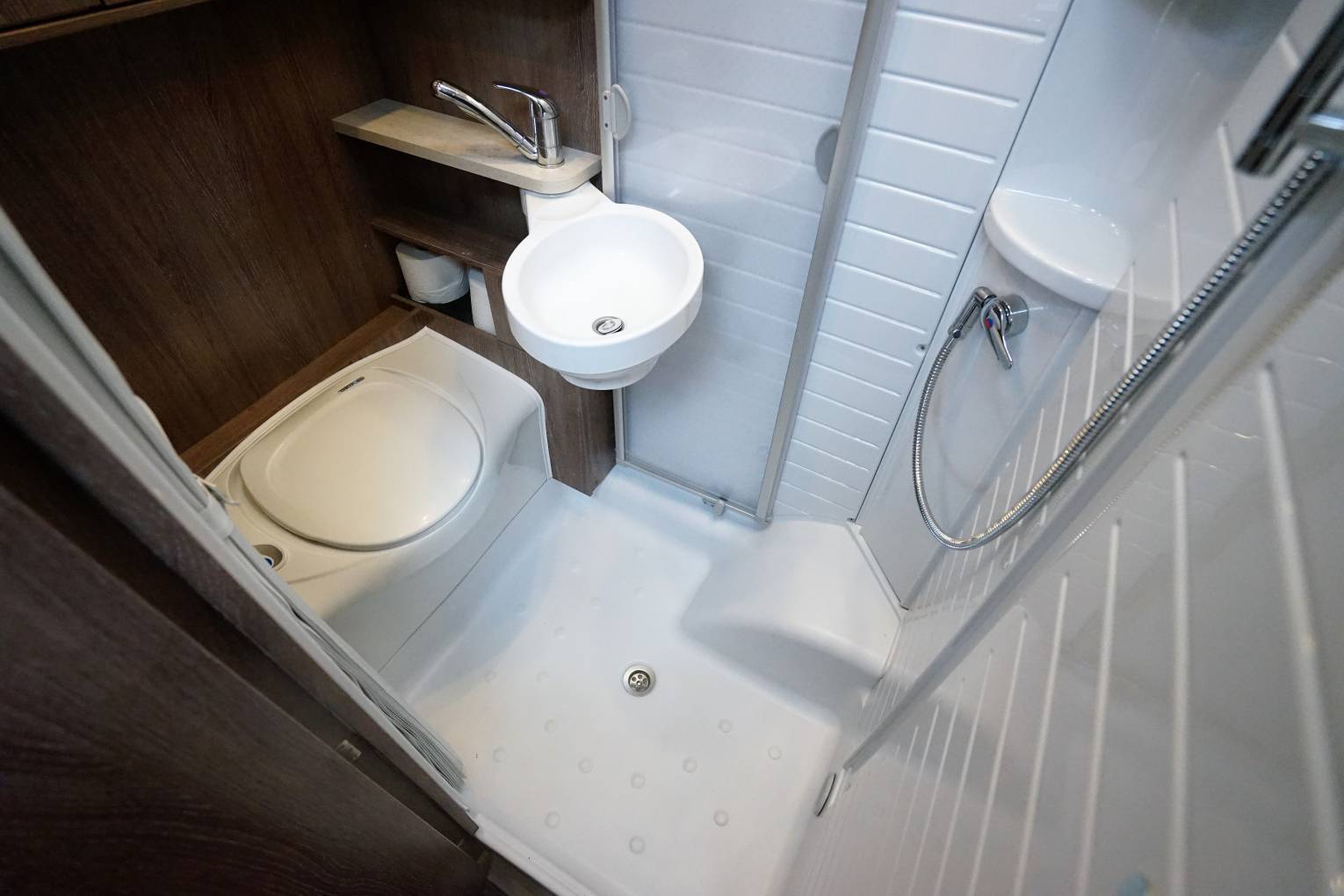 washroom features a electric flush cassette toilet, a swing-out washbasin and
