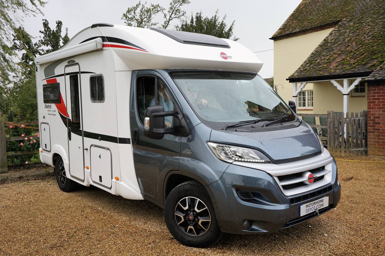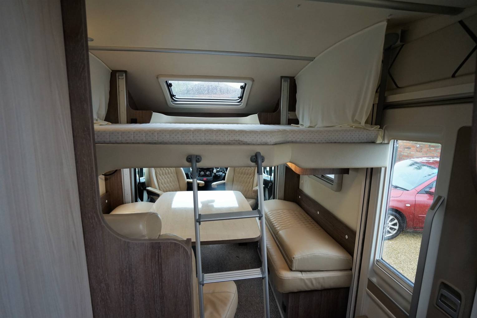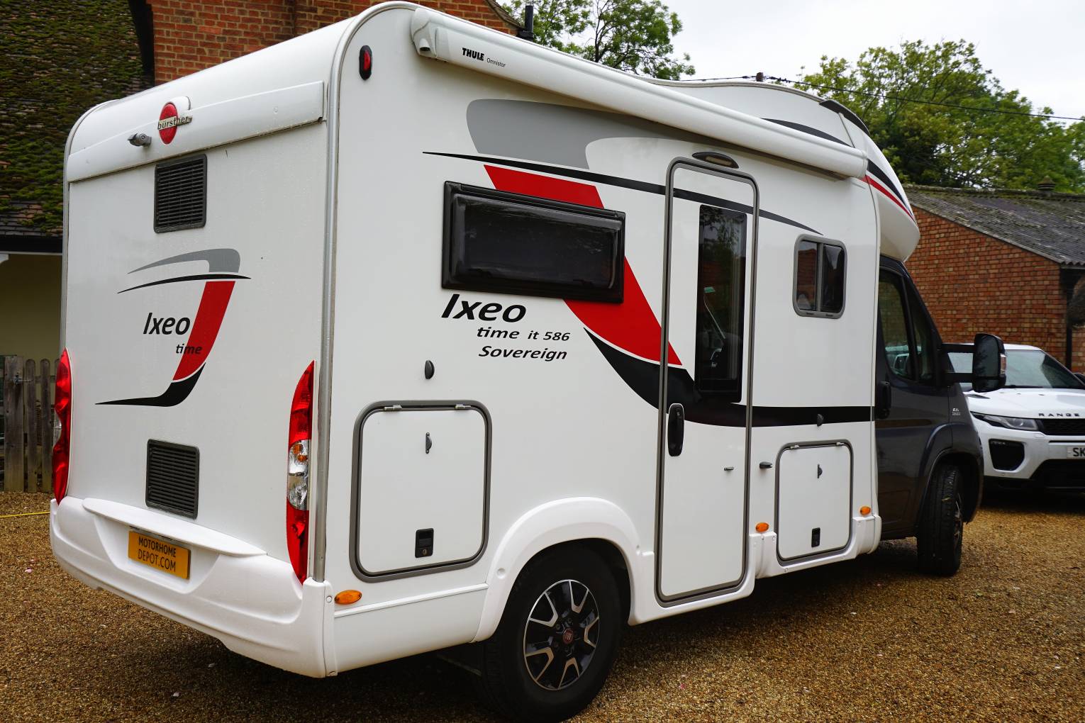 2016 Burstner IXEO Time IT586 Sovereign Automatic 4 Berth Compact low-profile motorhome. Electric Drop down bed, Huge Lounge / dining area finished in cream leather. Just 5.99 meters in length but can seat up to 8 adults in the living area, 4 Travelling seat belts and 2 double beds. Features Alloy wheels, DAB radio, Sat Nav, the Sovereign offering includes an awning, reversing camera, Graphite Cab, large cab skylight and extra-wide habitation door.