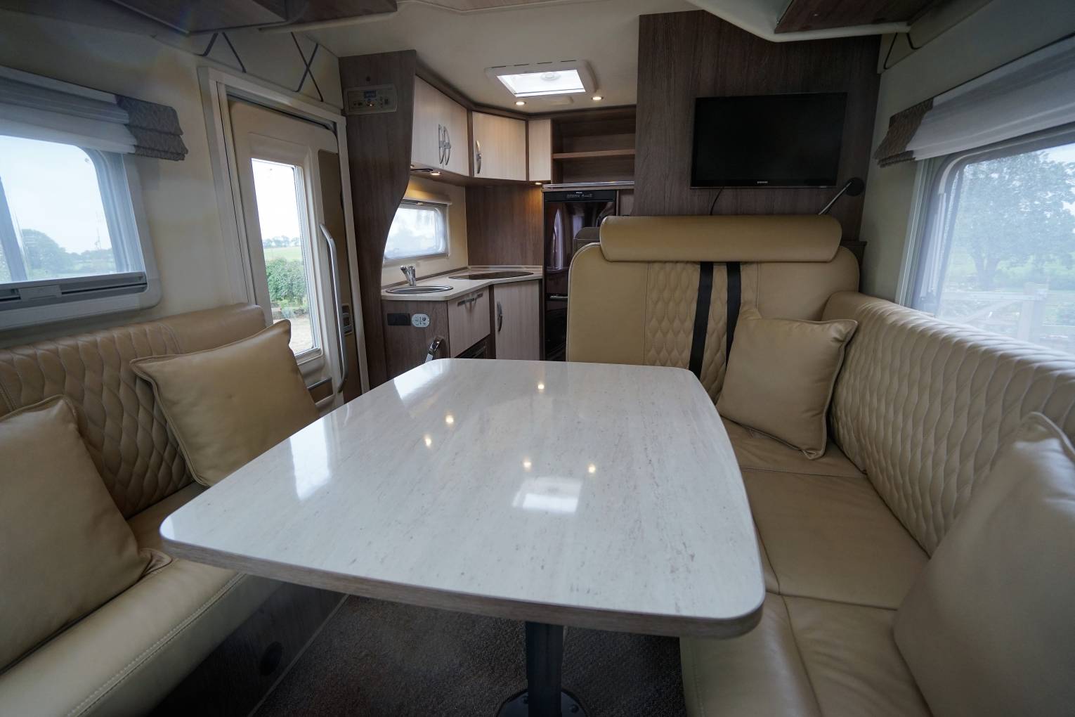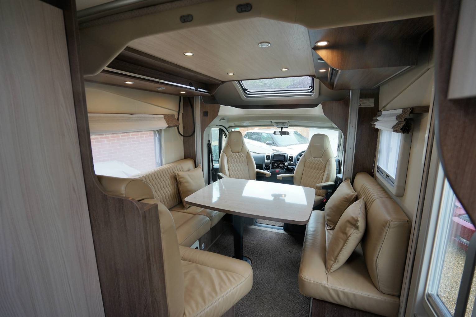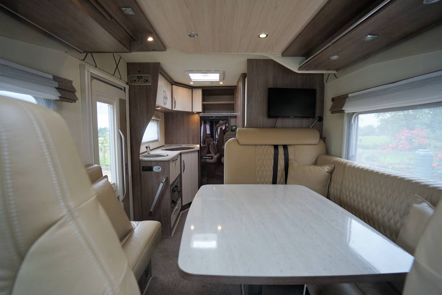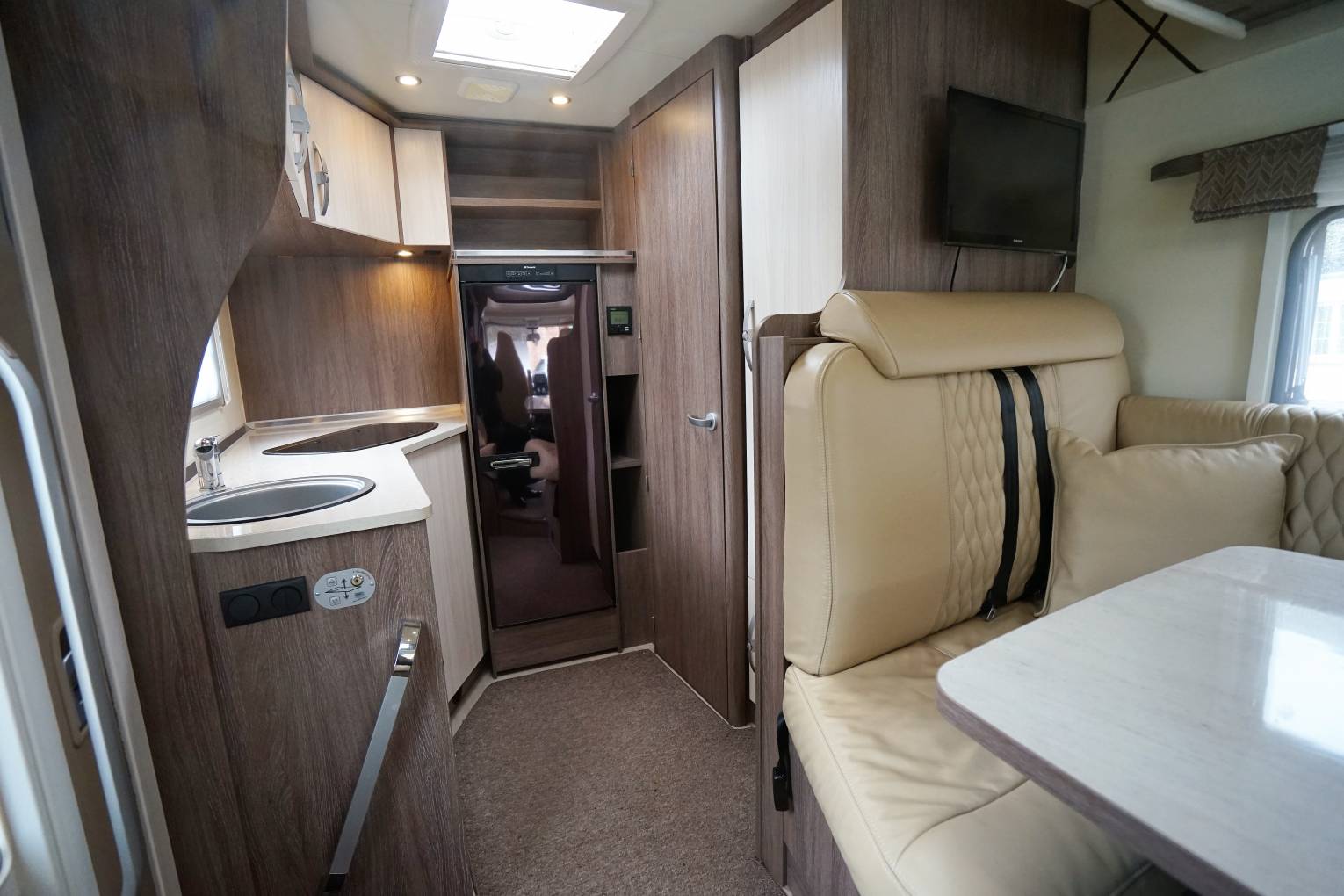 2016 Burstner IXEO Time IT586 Sovereign Automatic 4 Berth Compact low-profile motorhome. Electric Drop down bed, Huge Lounge / dining area finished in cream leather. Just 5.99 meters in length but can seat up to 8 adults in the living area, 4 Travelling seat belts and 2 double beds. Features Alloy wheels, DAB radio, Sat Nav, the Sovereign offering includes an awning, reversing camera, Graphite Cab, large cab skylight and extra-wide habitation door.