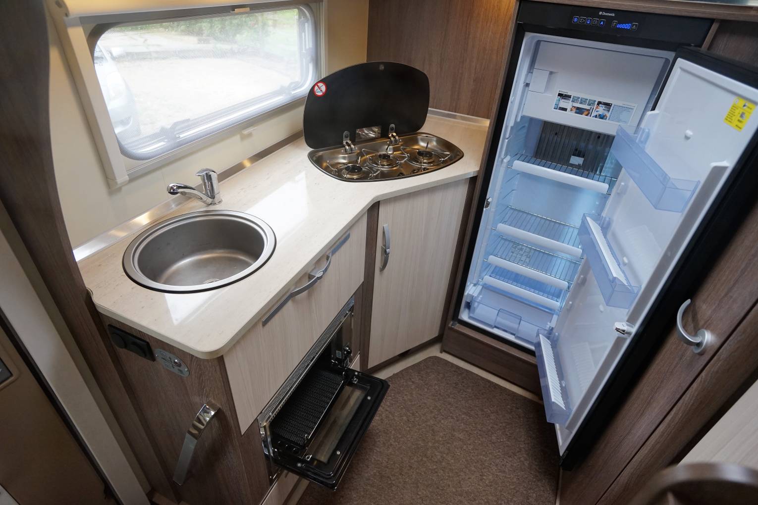 sink and 145 litre Dometic fridge with removable freezer. At the other rear