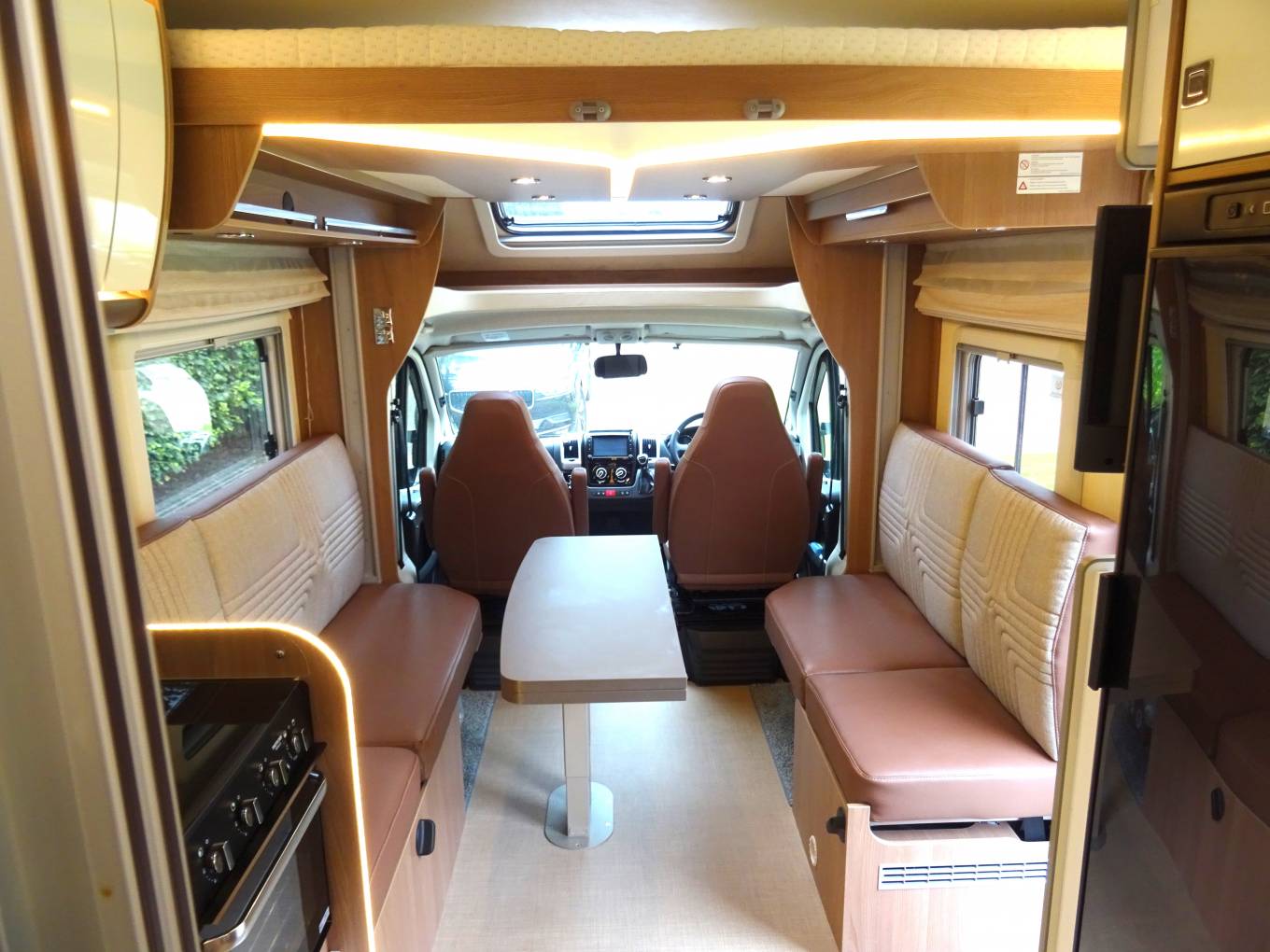 This spacious Burstner Lyseo 680 Harmony Line four berth is in first class condition, with many extras. Built on the Fiat Ducato Maxi with the 2.3 Diesel, and 9 speed Automatic gear box and is Euro 6 compliant. There are four belted travel seats, electric drop-down double bed, cab and habitation air conditioning, TV, Wifi, large garage.