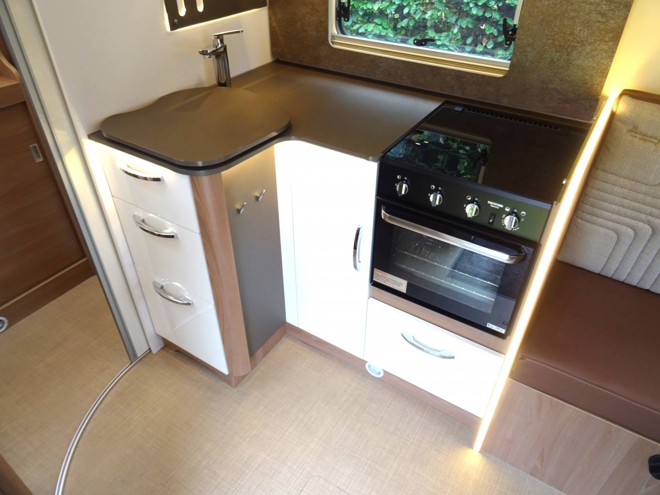 the sink cover spinning round for extra work top. There is a Thetford oven/grill,