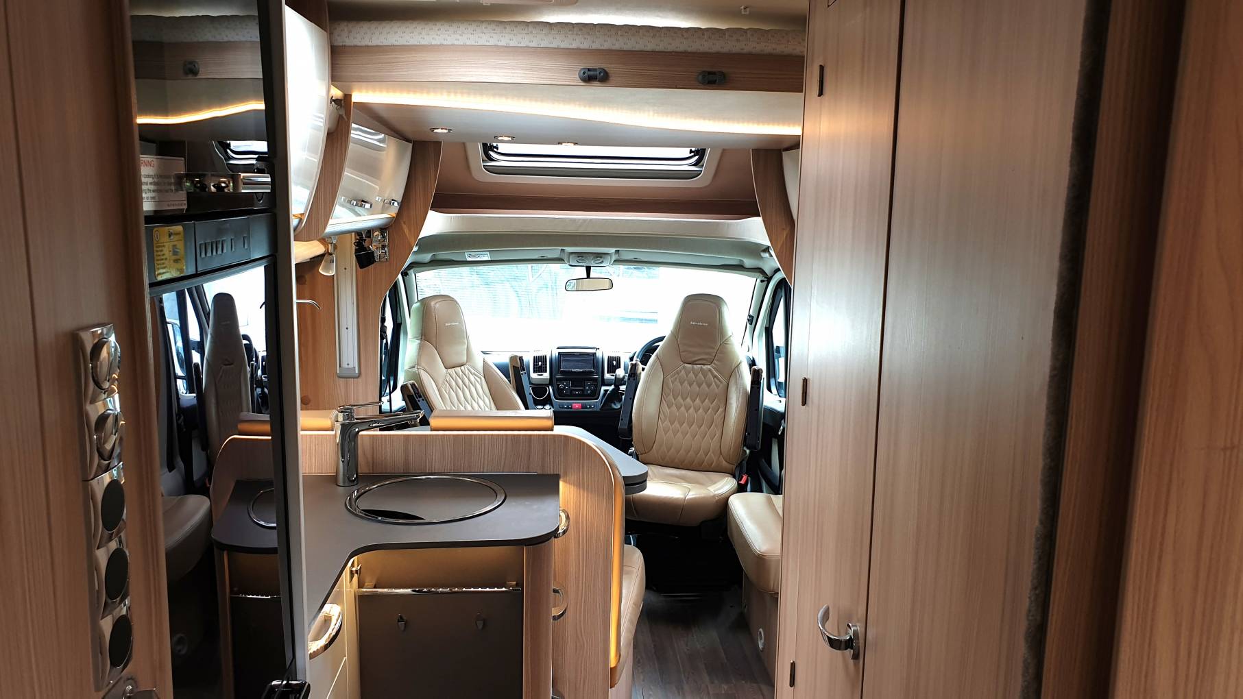 In the cab there is Cruise Control, Cab Air Con, Reversing Camera & Sensors, Radio/Sat. Nav./Camera Display, Electric Windows/Mirrors, Remote Central Locking,Other features incude Blown Air Heating, Heki Roof Light, 4G WiFi Ready, Refillable Gaslow System, Carpets, Awning, Electric Step, External Gas BBQ Point, External Shower point, Bike Rack with 2 Rails, Solar, Alloy Wheels, 2 x leisure batteries and 2 x TV.