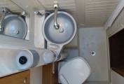 cassette and a wash hand basin above with chrome mixer tap. To the rear is the