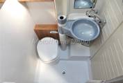 The main double bed is situated over the cab and is accessed via a small ladder. There is a window at one end of the bed to flood the area with light during the day.