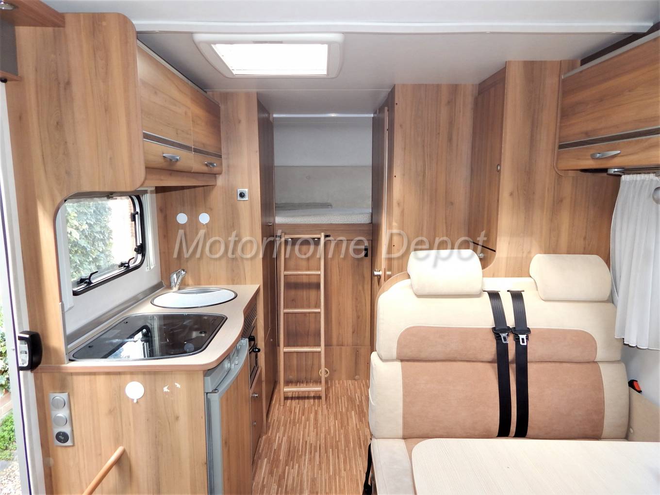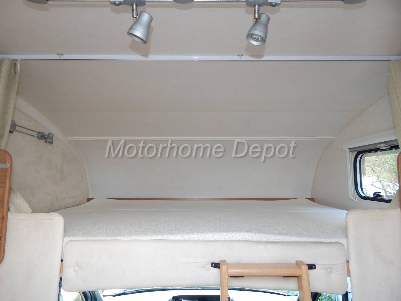 To the rear is the twin single bunks over garage which can be accessed via a ladder. A clever design features is that if you don’t require the use of the bottom bunk then it can be folded up out of the way so you can store more kit in the large garage.