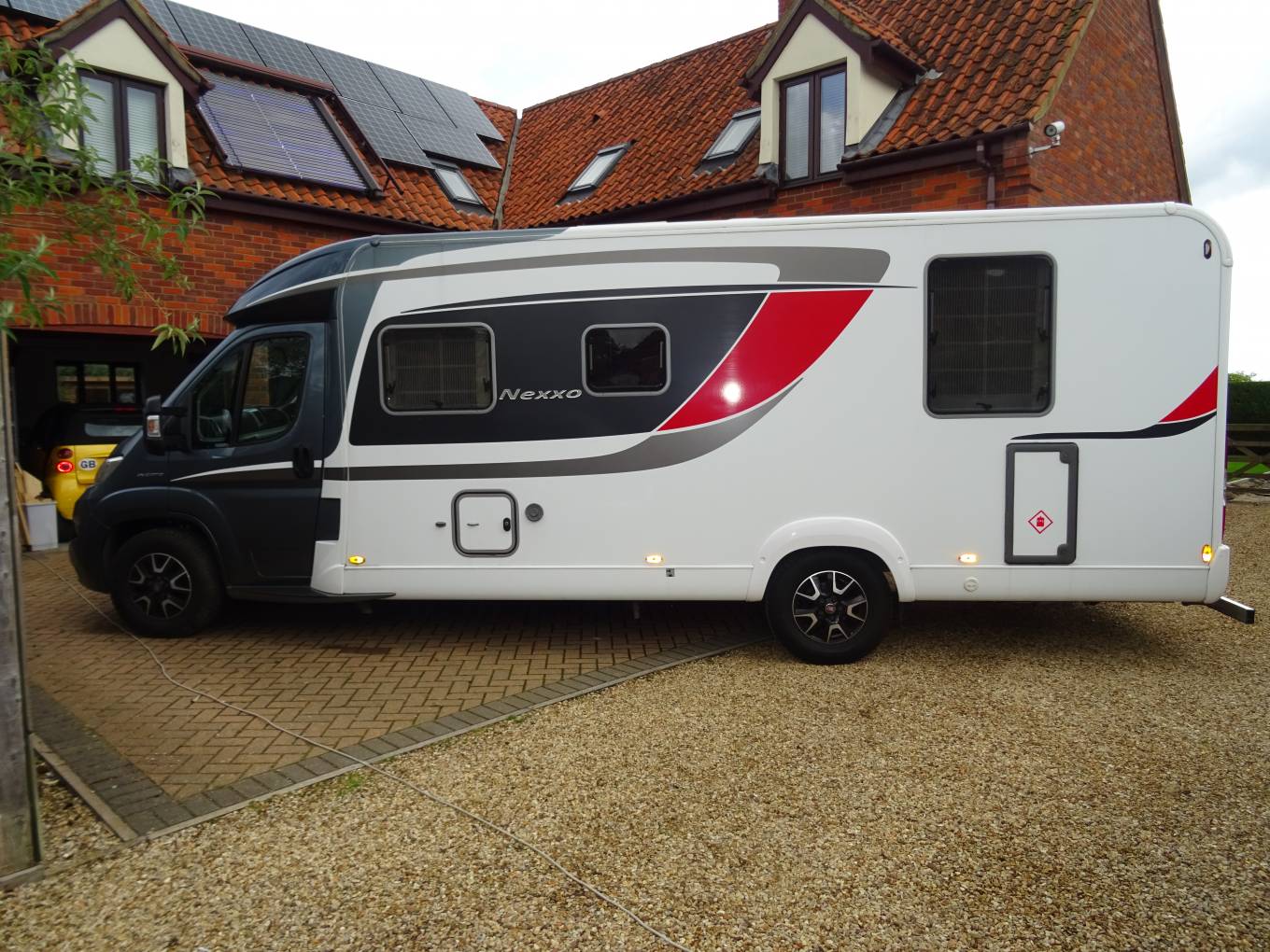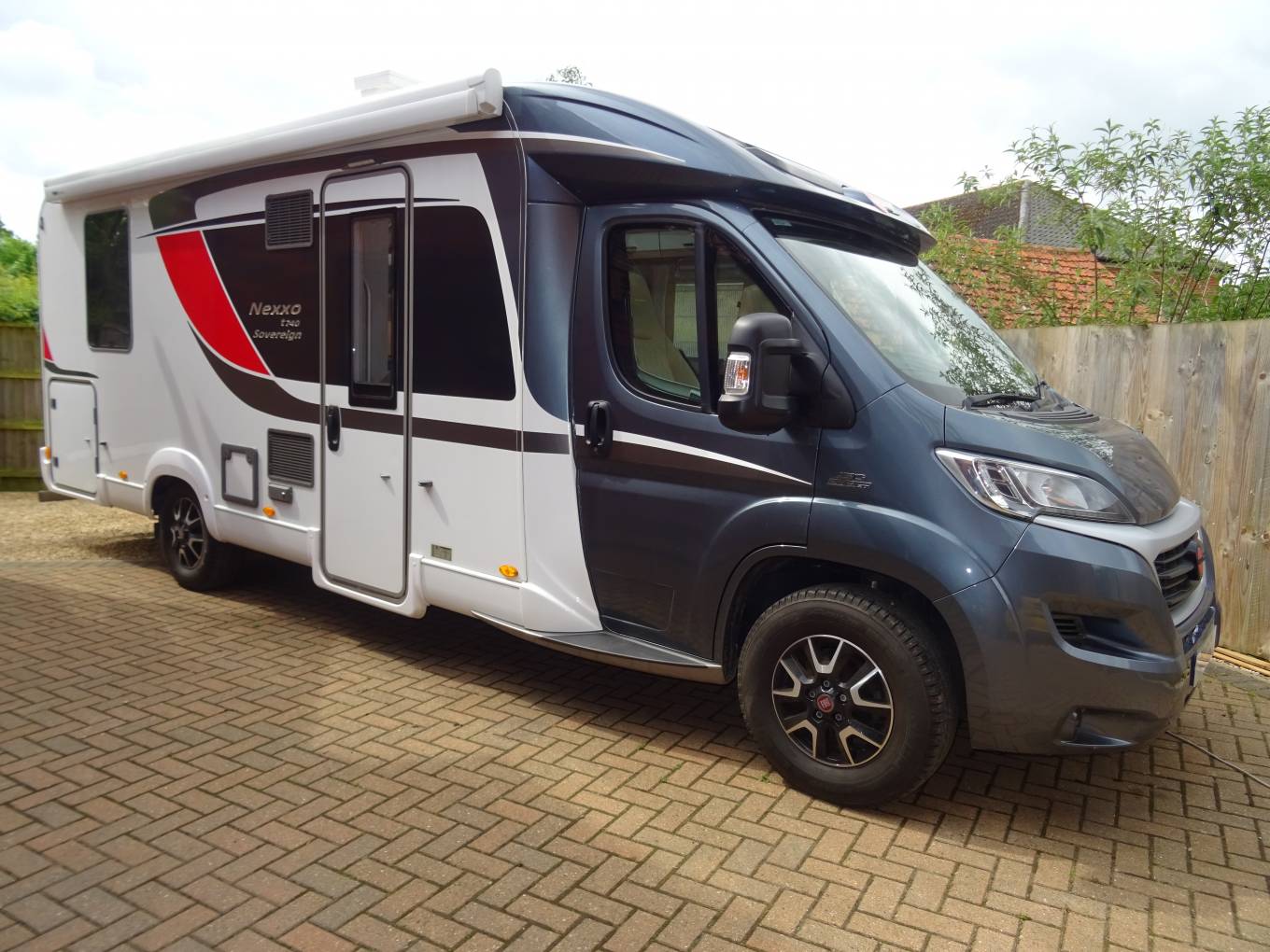 Really pleased to offer this Stunning and well looked after 2016 Fiat Burstner Nexxo Sovereign T740. 0ne owner from new with only 12,000 miles with new cambelt September 2021. For easier access there is a larger entrance door. The layout consists of a front lounge dinette which also coverts into a single bed. Both front seats swivel round and the lounge area is equipped with a pull out television. There are two rear passenger seat belts. The upholstery is a lovely cream leather giving a feel of luxury to the motor home with lounge table. There is a central side kitchen including 3 gas rings low level oven and large separate fridge and freezer. Rear fixed island bed with comfortable memory foam mattress and TV with access to the garage space. At the foot of the bed is a shower cubicle separate from the toilet/washbasin with door to separate bedroom from lounge.