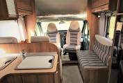 A social dinette area to the front with 2 swivel captain chairs comfortably seating 4-6 people which doubles as the secondary double bedded sleeping area.